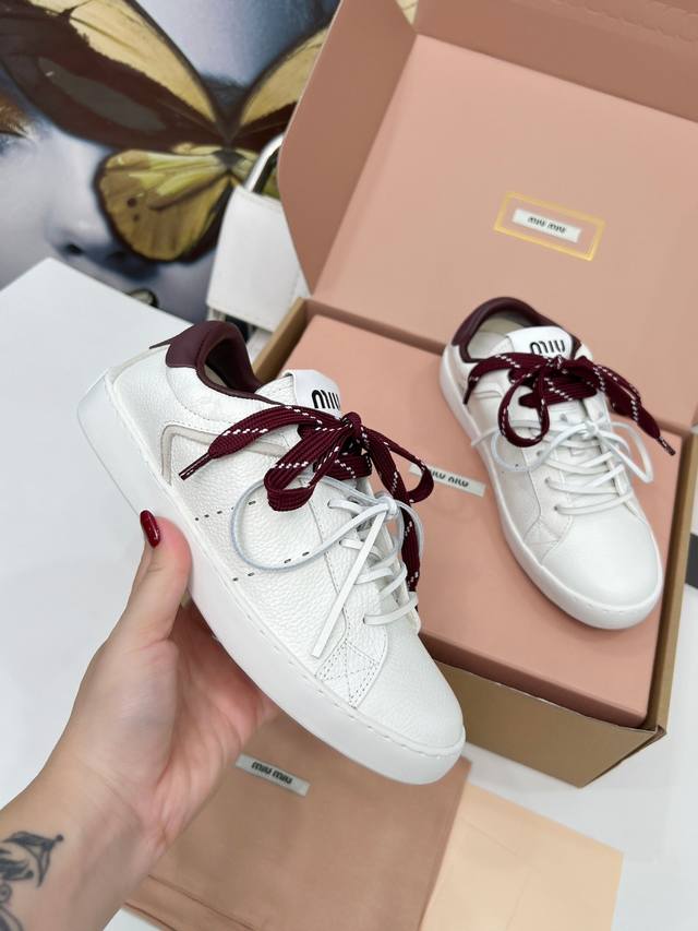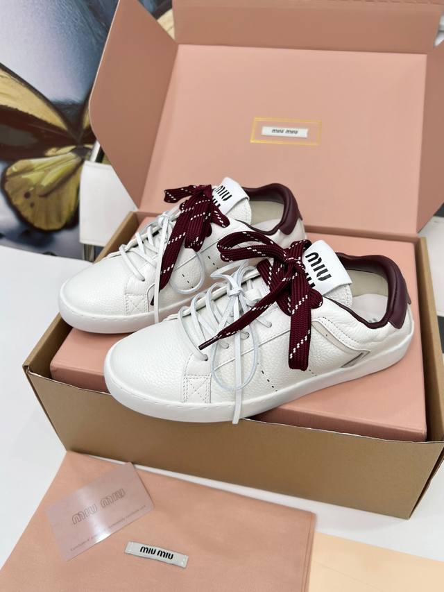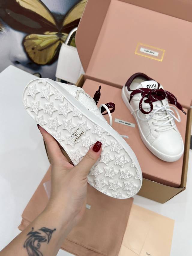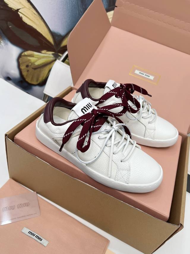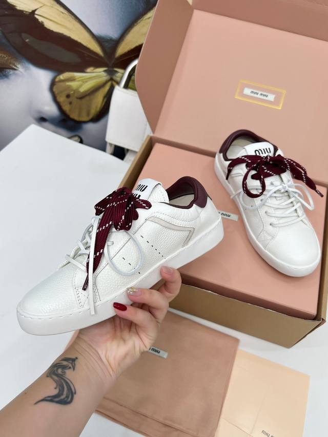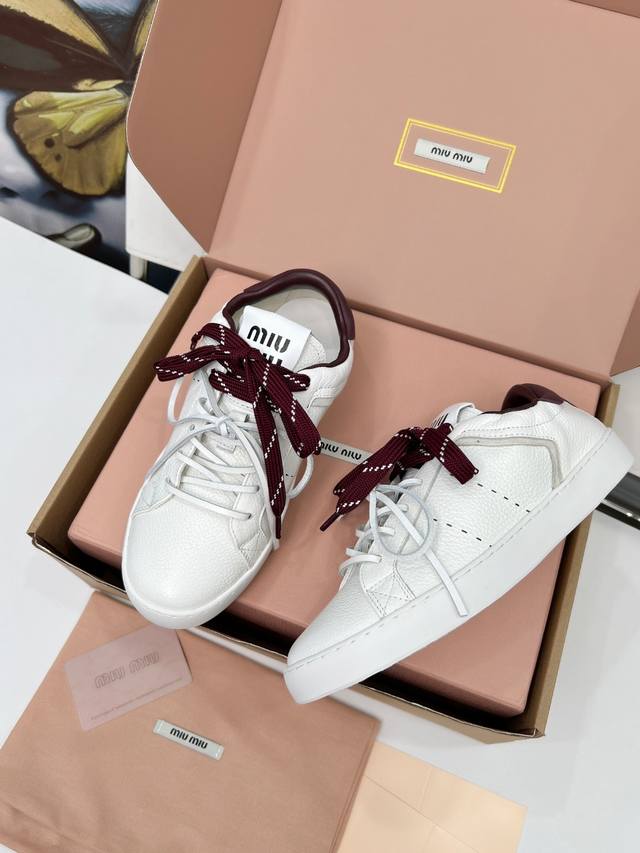 顶级版本缪缪小白鞋脏脏鞋! 25新款英伦风系带乐福鞋Miumiu独一无二的工艺 !秋冬新款休闲运动小白鞋 真的美炸啦! 鞋面上那些小装饰 简直就是Miu'niu的特色!这是我们特意加上去的,拆卸 虽然是装饰用的,但质量可是杠杠的!Miu'niu做东西,从来都不含糊, 运动小白鞋,简约而不简单,经典的白色,超级百搭,无论是搭配牛仔裤还是裙子人,都能轻松打造出时尚感。鞋身的细节处理非常精致,彰显了Miu Miu的品质与风格。 穿上它瞬间有一种随性又时髦的感觉。适合那些想要在秋冬季节也能享受舒适与时尚并存的姐妹