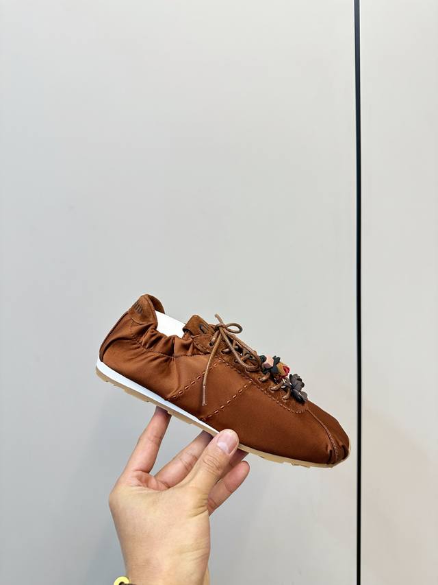 FFF 顶级版本+飞机盒+扣件 DDD Miumiu|缪缪25新品绸缎面芭蕾德训鞋 DDD Miu Miu Plume系列缎面芭蕾德训鞋,将德训鞋轮廓和芭蕾舞鞋优雅感融合,鞋身缎面+麂皮拼接,光泽感满满,褶皱细节超有辨识度F 。浅色橡胶平底,日常穿超舒适,无论裙装还是裤装都能轻松打造芭蕾风时髦感,是Miu Miu热门单品! DDD 面料:真丝绸缎面 DDD 羊皮乳胶垫脚 DDD 码数:35-40 40.41订做 DDD