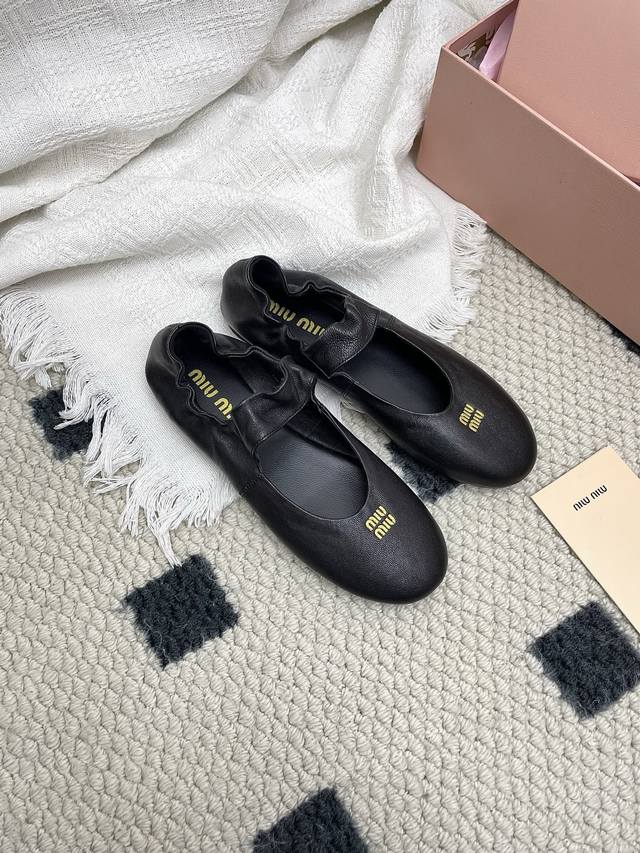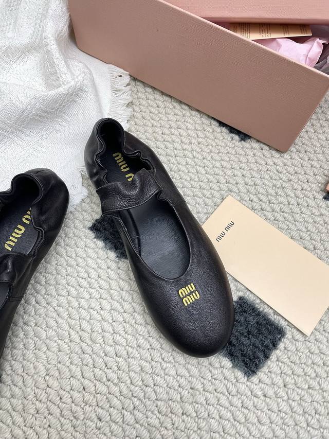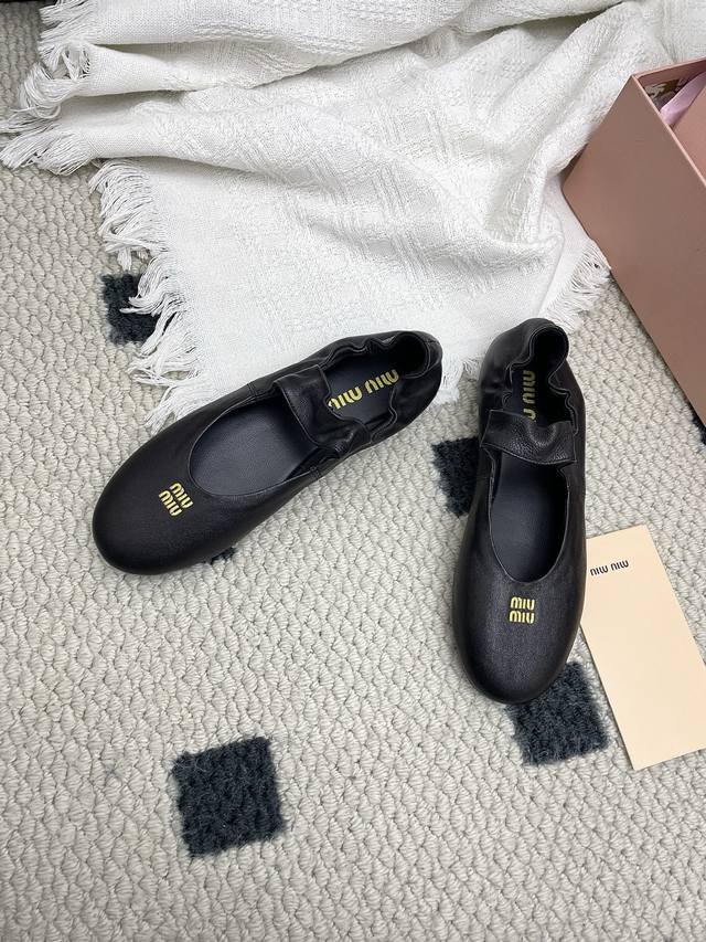 顶级版本 代购级别2025春夏时装周Miu Miu谬谬新出松紧芭蕾舞 DDD 鞋真的让人一整个心都融化除了中间夹着一颗钱币这种细节之外、鞋型整体都狠秀气不笨重、圆头 DDD 鞋面:进口羊皮 DDD 内里:进口羊皮 DDD 大底:原版鞋底 DDD 码数:35~39 40.41订做不退不换 DDD