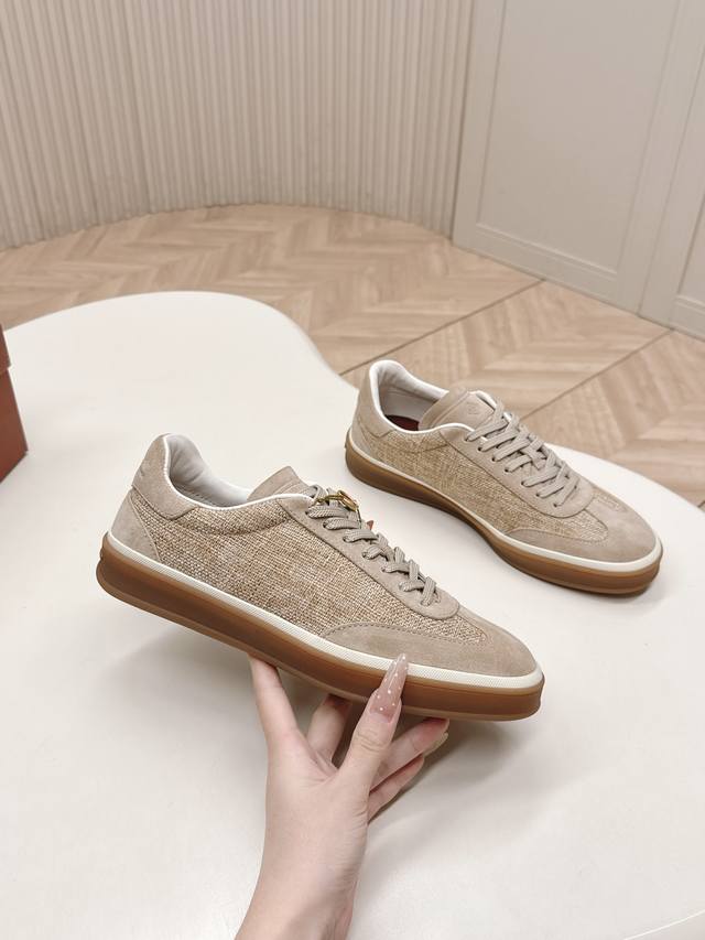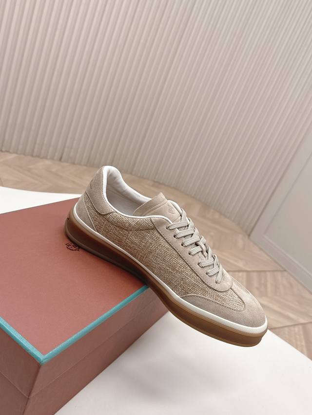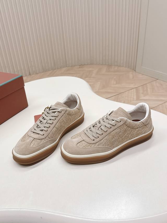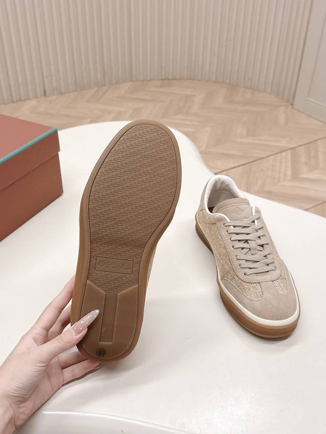 顶级版本 出 Loropiana 诺悠翩雅 Weekendwalk新款休闲鞋,采用麂皮面料,鞋面绒面革嵌片和内侧轻微加垫锦纶面料饰边,突显运动风范。轻盈的鞋底则