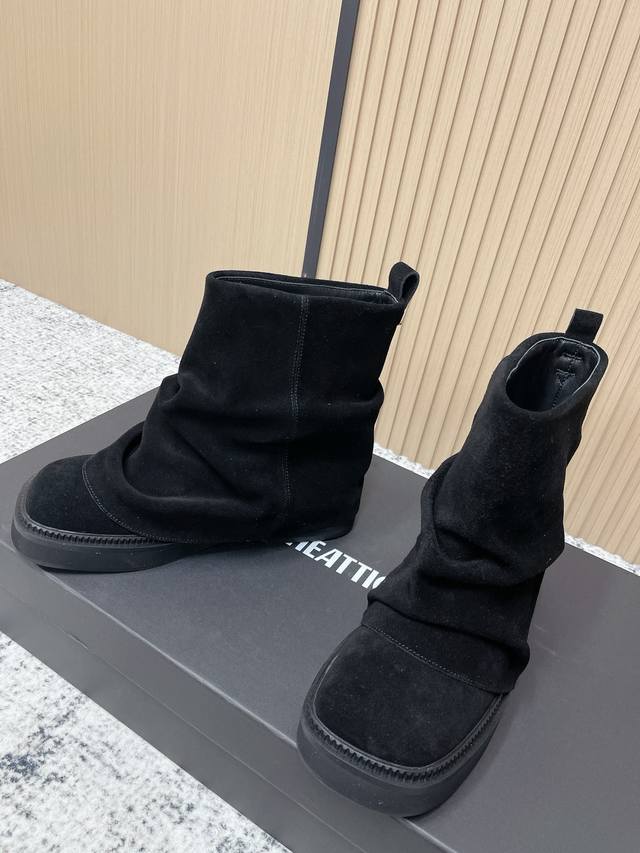 顶级版本: DDD 小众潮牌 The Attico 2025Fw秋冬新品时髦厚底短靴爆火网红短筒堆堆靴一脚蹬短靴 DDD 悠然呈现全新标志性鞋履系列 Robin DDD 甄选皮革融合街头灵感,匠心工艺跃升精致日常,个性褶裥与金属缀饰特立独行,多样款式描绘都市女性多元肖像,率性游走自我主场! DDD 超高品味单品 搭配一切衣服都好看的一双靴 太绝了 DDD 真的时尚感和质感都很在线啊,我愿称之为辣妹必备单品,堆堆靴超显腿长腿细,超酷的靴型穿上走路带风气场两米八!! DDD 视觉盛宴 性感自由气质 简约气质款