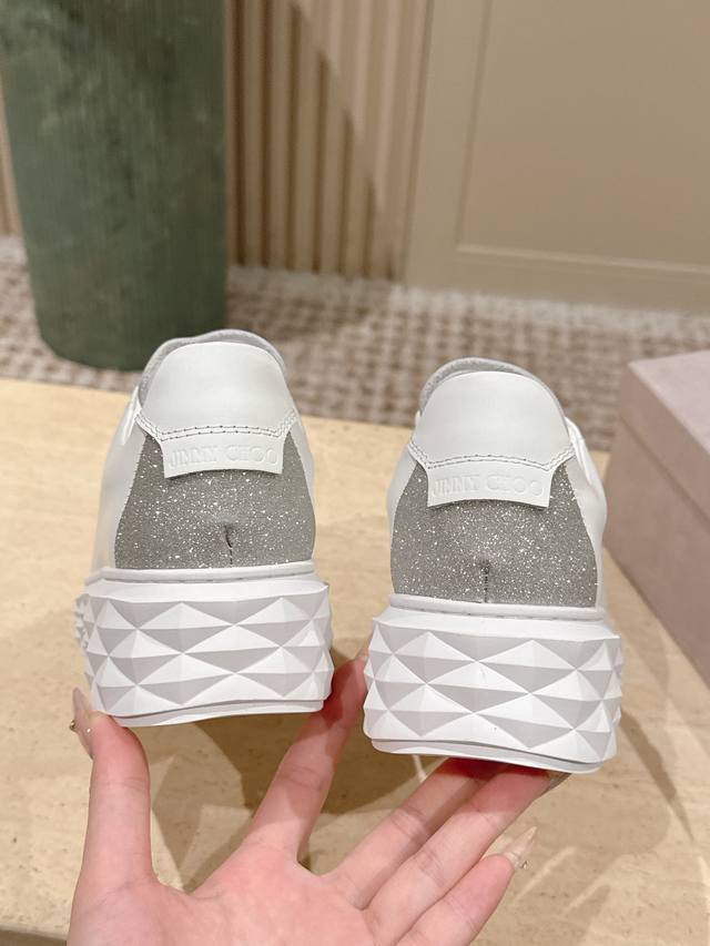顶级版本: 新款吉米周 Jimmy Choo ,独家发售,原版大底休闲小白鞋,采用最新工艺设计,立体感强多种工艺融合一起,颠覆时尚,超级有型!搭配超美。原版一比