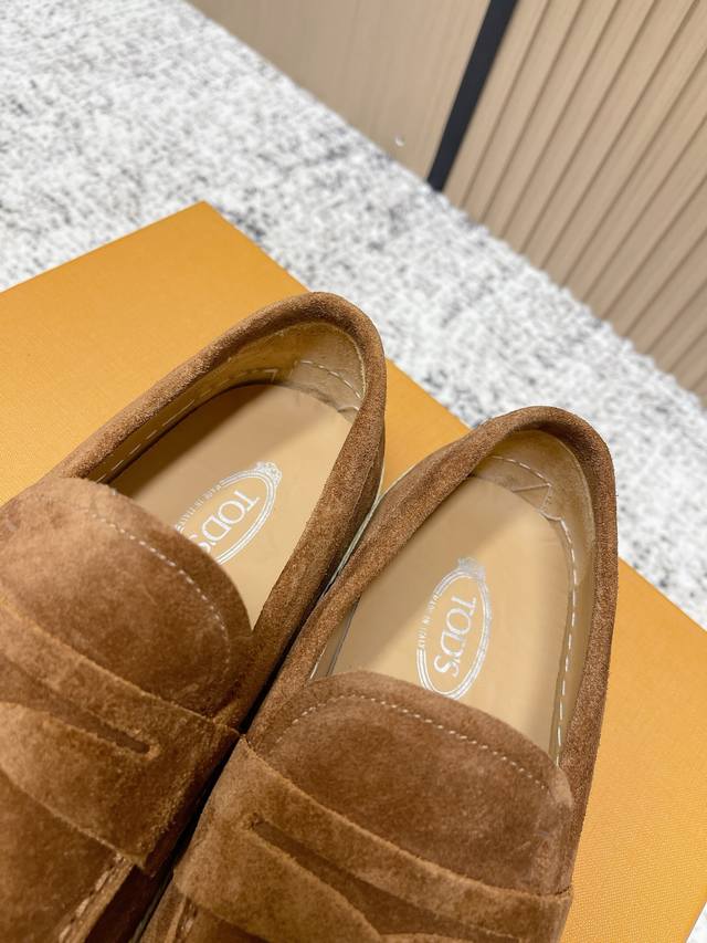 / 顶级版本: 男款 Tod's 托德斯男士乐福鞋本款乐福鞋以雅致的进口头层牛皮革制成, 配以品牌Logo横条装饰,外露手工缝线设计。真皮嵌边,耐磨橡胶大底,内里本