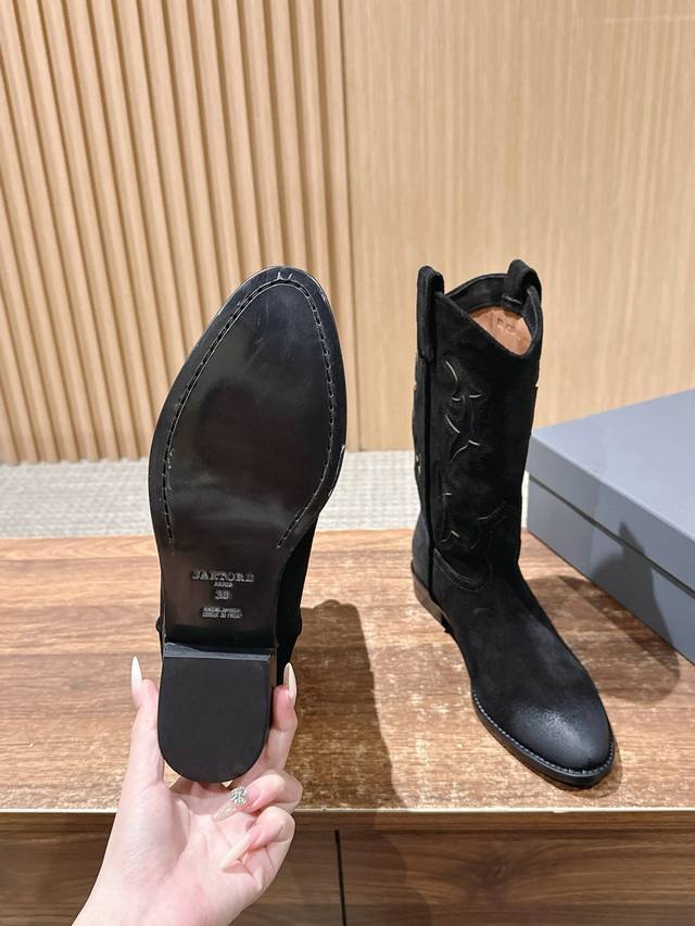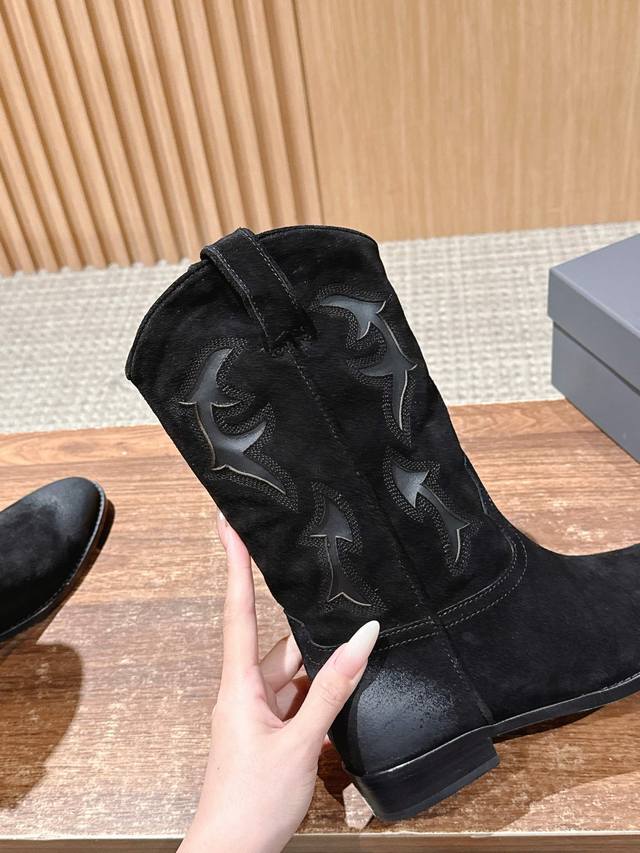 顶级版本 #秋季最新款复古一脚蹬高靴 DDD 这款靴子采用一脚蹬元素的融入,呈现出自然复古的质感。圆鞋头设计线条流畅,简约大气,既显高挑身材,又能有效提升舒适度,而鱼鳞纹防滑橡胶底则具有出色的耐磨性和防滑性,让你在任何场合都能保持稳定与自信。靴子的后拉链穿脱设计也充分考虑到了实用性,集舒适、实用与时尚于一身,是你鞋柜中不可或缺的百搭单品。 DDD 面料: 原版定制牛猄做旧工艺 DDD 内里: 原版定制羊皮 DDD 垫脚: 原版定制羊皮 DDD 大底: 原版定制真皮组合底 DDD 跟高:2.5Cm DDD