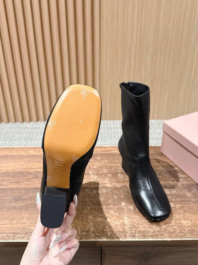 顶级版本 #缪缪 25Aw新品弹力靴短靴 粗跟,包腿,踝关节收紧!这几个要素和在一起就很难不好看,短靴把酷飒与精致拿捏得死死的黑色皮革自带高级感 金属扣点缀瞬间点亮造型 方头加中跟设计 复古又显腿型 不管是配牛仔裤还是小裙子 都能轻松穿出时髦腔调~ 长靴太绝啦 皮质高级又有质感 金属扣点缀瞬间提升时髦度 过膝设计还能轻松打造大长腿 搭配裙装裤装都很出挑 穿上就是行走的时尚画报 鞋面: 植鞣弹力羊皮 垫脚: 羊皮 大底: 意大利真皮大底 跟高: 6Cm Size:35-41 40.41定制不退换