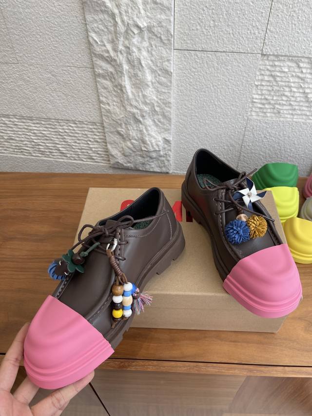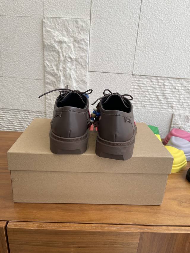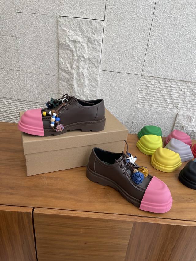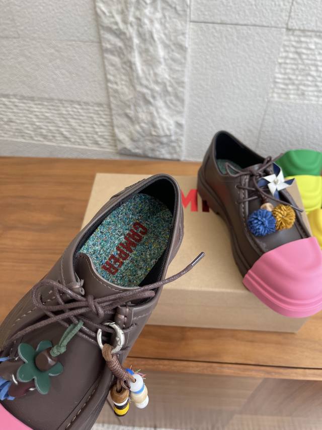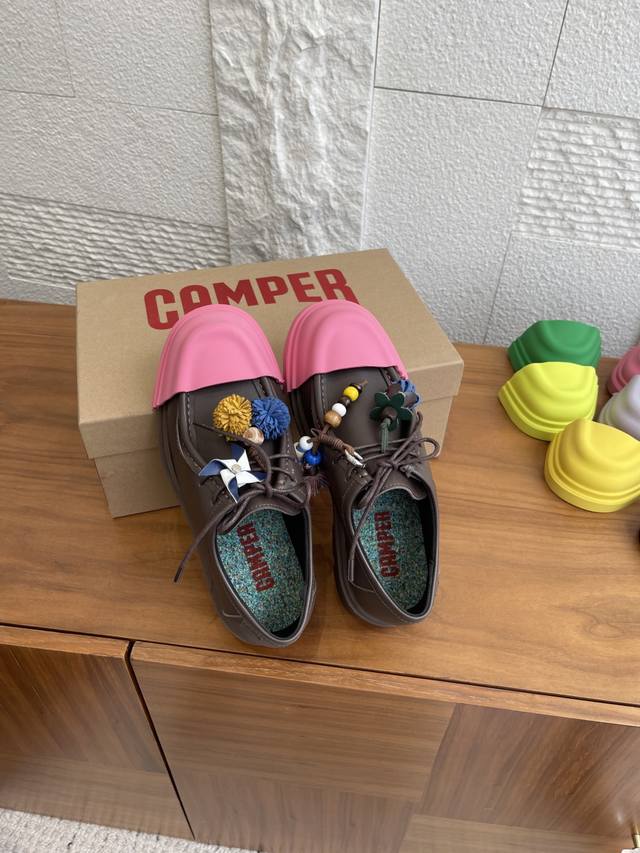顶级版本: DDD 鞋头7色任意搭配 另加鞋头30一对 DDD Camper 看步 2025 秋冬新款 Junction可替换鞋头 厚底 一脚蹬 乐福鞋 DDD 西班牙品牌Camper Junction系列换鞋头鞋,牛皮革+撞色鞋头,撞色设计超吸睛。鞋头可拆换,随心搭配多种颜色,个性满分!厚底橡胶鞋底,舒适又耐磨,适合长时间穿着。鞋带上的彩色毛球和珠饰,趣味十足,日常通勤或休闲都能轻松驾驭,搭配黑白灰基础款服饰,瞬间提升穿搭亮点。 DDD 面料:进口牛皮 DDD 内里:进口羊皮 DDD 大底:原版开模橡胶