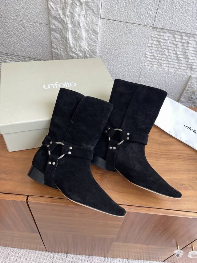 / 顶级版本: 韩国 Shop Weare 25Ss 小方头 金属扣 粗跟 短靴 原版购入开发1:1复刻做货。韩国Shop Weare设计师档口手工鞋。绒面皮拼接设