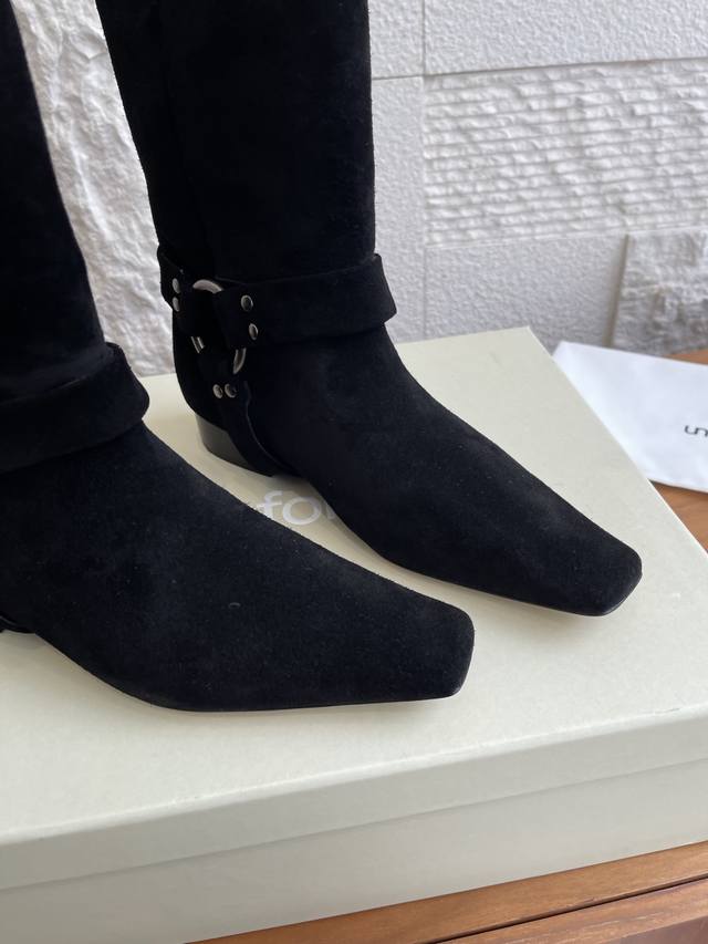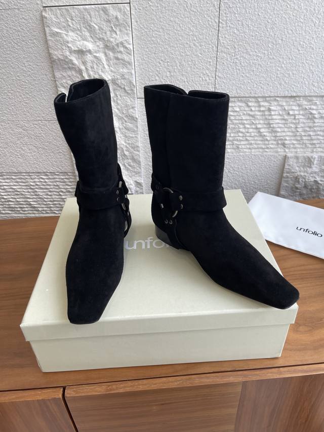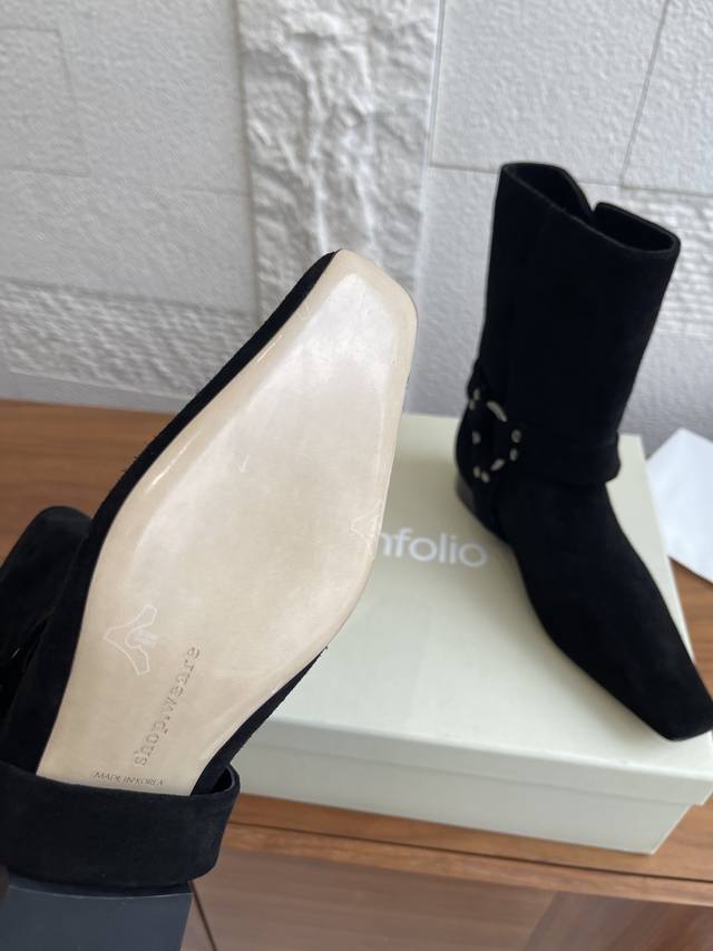 顶级版本: 韩国 Shop Weare 25Ss 小方头 金属扣 粗跟 短靴 原版购入开发1:1复刻做货。韩国Shop Weare设计师档口手工鞋。绒面皮拼接设