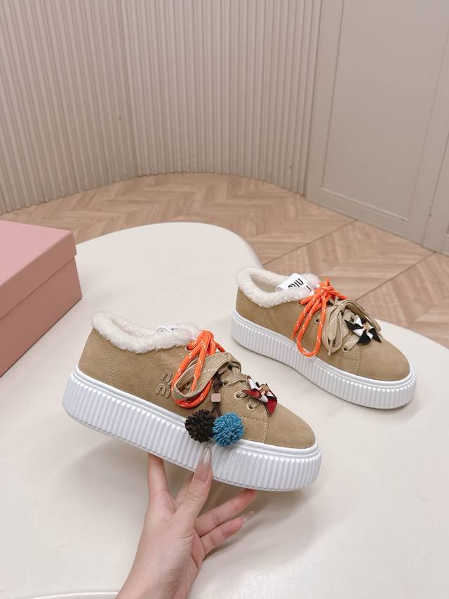 Miumiu| 缪缪2025新品3D刺绣厚底休闲鞋