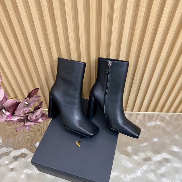/ 顶级版本 Alaia阿莱亚 极简风时髦精侧拉链粗跟方头短靴高跟及踝靴 时尚达人都在寻觅一双能兼顾舒适与风格的短靴 而这双无疑是这个季节的最佳答案! 搭配简约的直