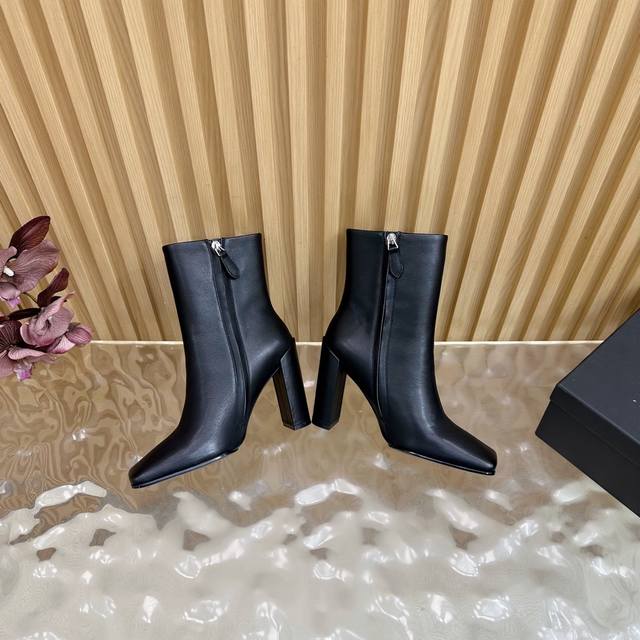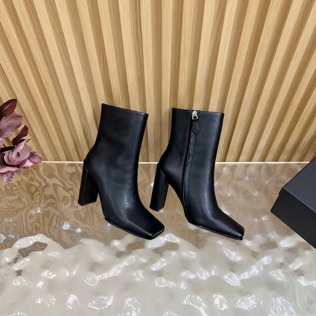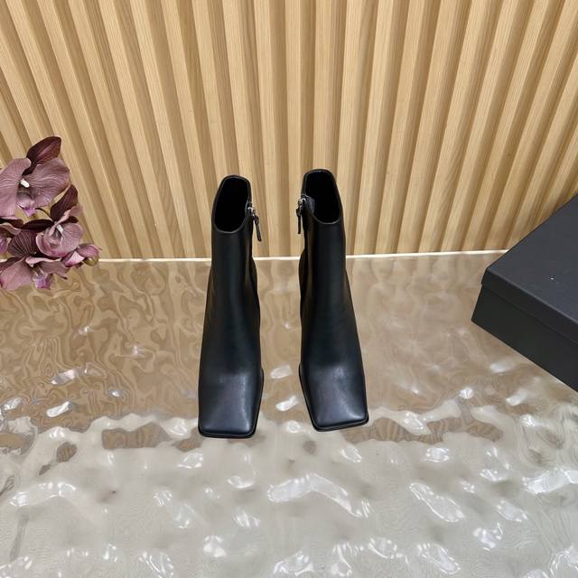 顶级版本 Alaia阿莱亚 极简风时髦精侧拉链粗跟方头短靴高跟及踝靴 时尚达人都在寻觅一双能兼顾舒适与风格的短靴 而这双无疑是这个季节的最佳答案! 搭配简约的直
