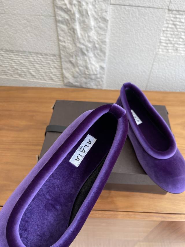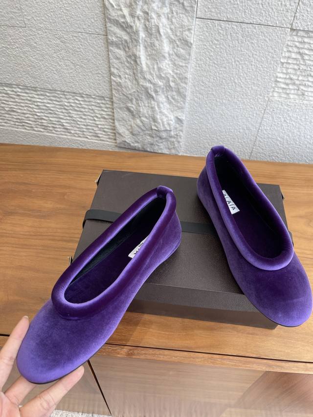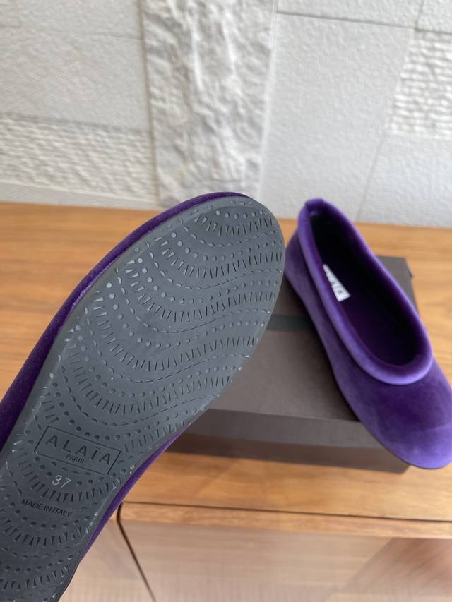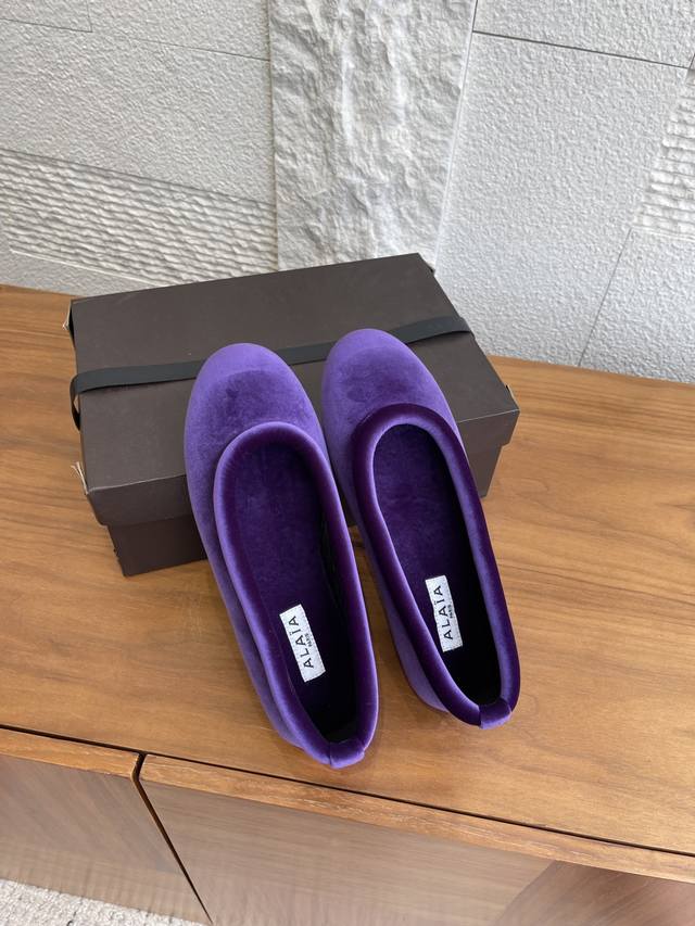 顶级版本: DDD Alaia 阿莱亚 2025 秋冬新款 圆头 平底 丝绒 玛丽珍 芭蕾舞鞋 DDD Alaia 阿莱亚这双丝绒芭蕾舞鞋,鞋面柔软细腻,低调正光质感,秋冬穿搭超有氛围感。圆头+低跟设计,舒适又优雅,通勤休闲都能驾驭。鞋底防滑耐,走路更安心。丝绒材质建议手洗或专业干洗,呆持质感哦~搭配裙装或裤装都很出彩,复古温柔风必备单品! DDD 面料:原版定制绒面 DDD 内里:进口羊皮 DDD 大底:原版开模橡胶大底 DDD Size:35-41 40 41定做不退换 DDD