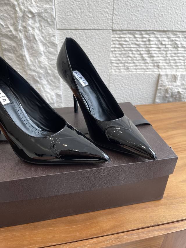 顶级版本: Alaia 25Ss 秋冬新款 尖头 细高跟 高跟鞋 单鞋 Alaia这款爱心高跟鞋,造型颇具雕塑美感,鞋面设计爱心立体浮雕图案,视觉效果直接拉满,简约百搭却不失干练气质,材质显高显细穿上自信感爆棚,女王范御姐风都显示淋漓 面料: 进口胎牛漆皮 内里 垫脚: 进口羊皮 大底: 意大利进口真皮大底 跟高: 9Cm Size: 35-42 40 41 42定做不退换