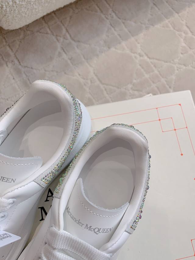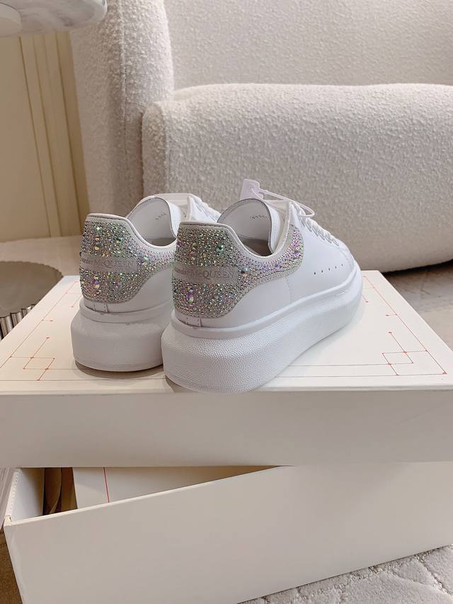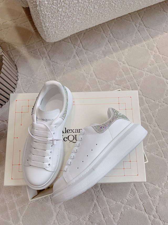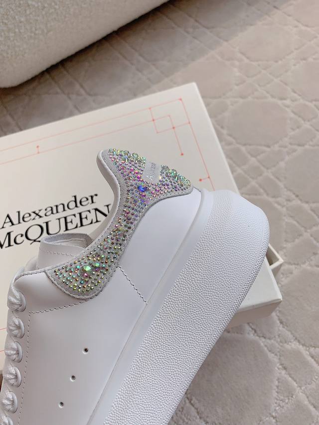 顶级版本 Alexander Mcquee*经典钻尾厚底小白鞋 情侣款顶级品质! 鞋面原版丝绸牛皮 内里顶级混种羊皮 垫脚牛皮 原版开模大底 女款35-39 4
