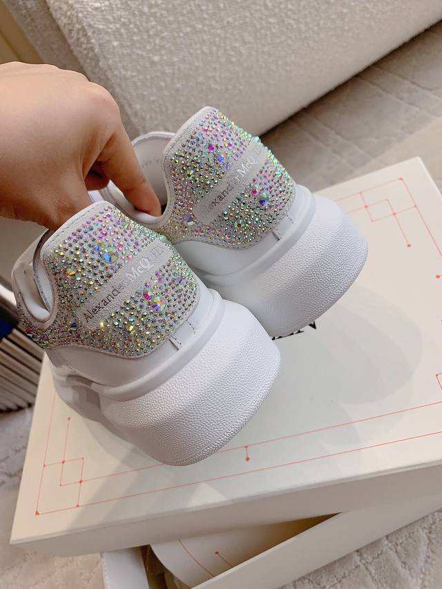 Alexander Mcquee*经典钻尾厚底小白鞋 情侣款顶级品质!