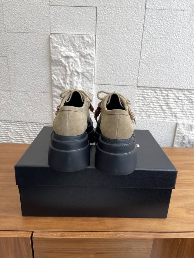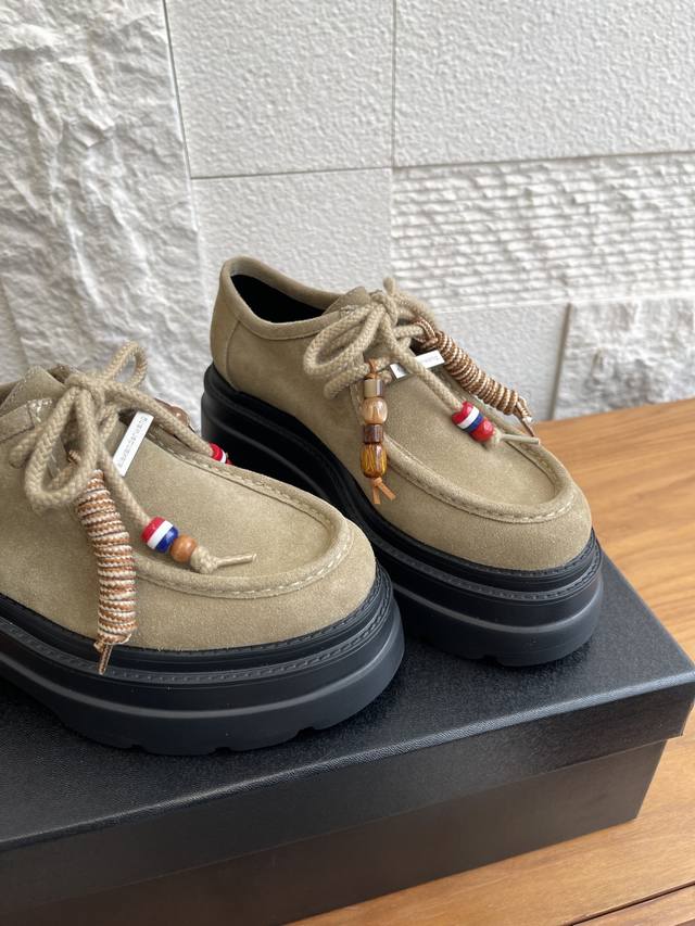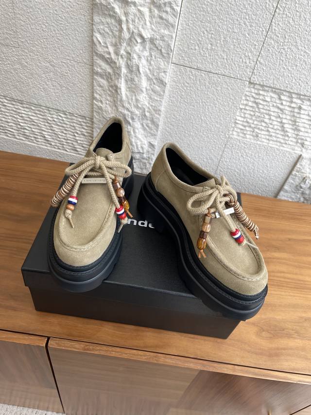 顶级版本: Alexander Wang 亚力山大王 25Ss 秋冬新款 复古 系带 厚底 乐福鞋 休闲鞋 Aw大王这款厚底乐福鞋采用麂皮绒制成,鞋带配金属徽标滑块和各类珠饰品,配搭7Cm厚底简约大方的造型设计,给人以随性休闲的时尚格调,穿着舒适轻便,运动灵活自如,满足日常个性穿搭。 面料:进口麂皮 内里 垫脚: 进口羊皮 大底: 原版开模橡胶发泡大底 Size: 35-40 40定做不退换