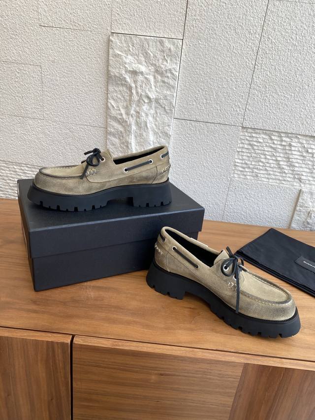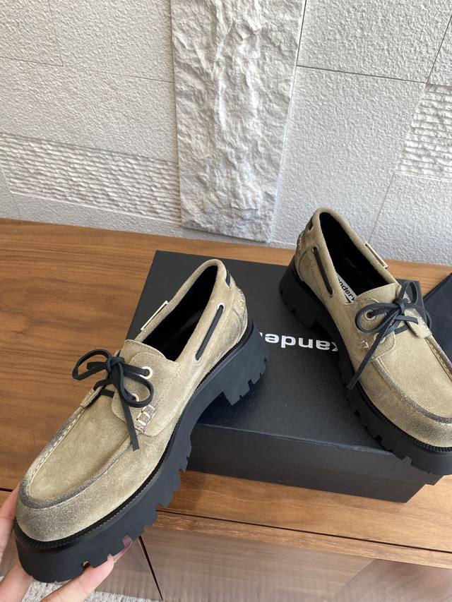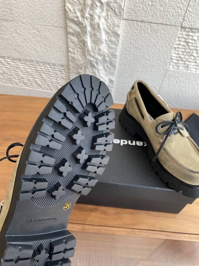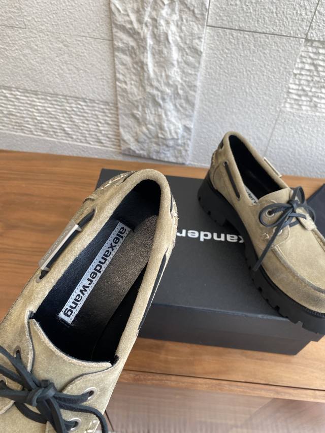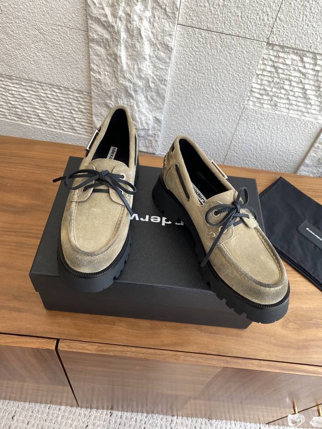 / 顶级版本: Alexander Wang 亚力山大王 25Ss 秋冬新款 Carson 做旧 系带 厚底 船头鞋 乐福鞋 休闲鞋 Aw大王这款船鞋采用上蜡绒面革