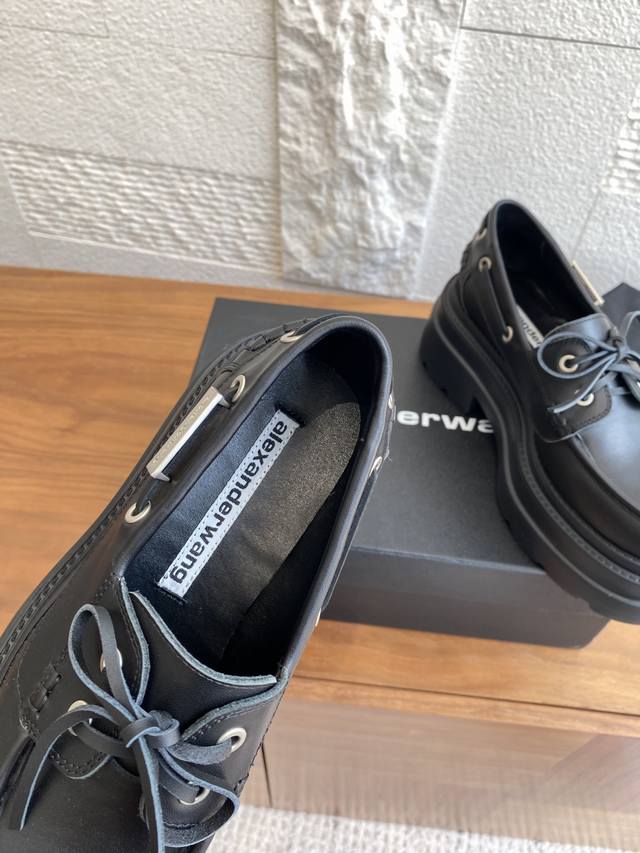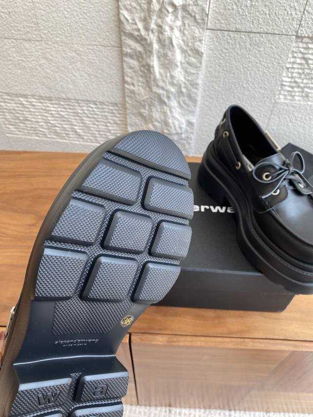 / 顶级版本: Alexander Wang 亚力山大王 25Ss 秋冬新款 Carson 系带 厚底 乐福鞋 休闲鞋 Aw大王这款厚底乐福鞋采用小牛皮制成,配有牛