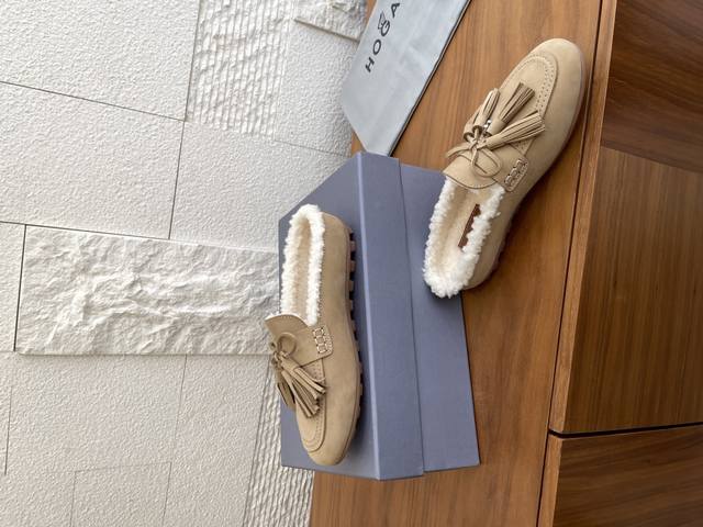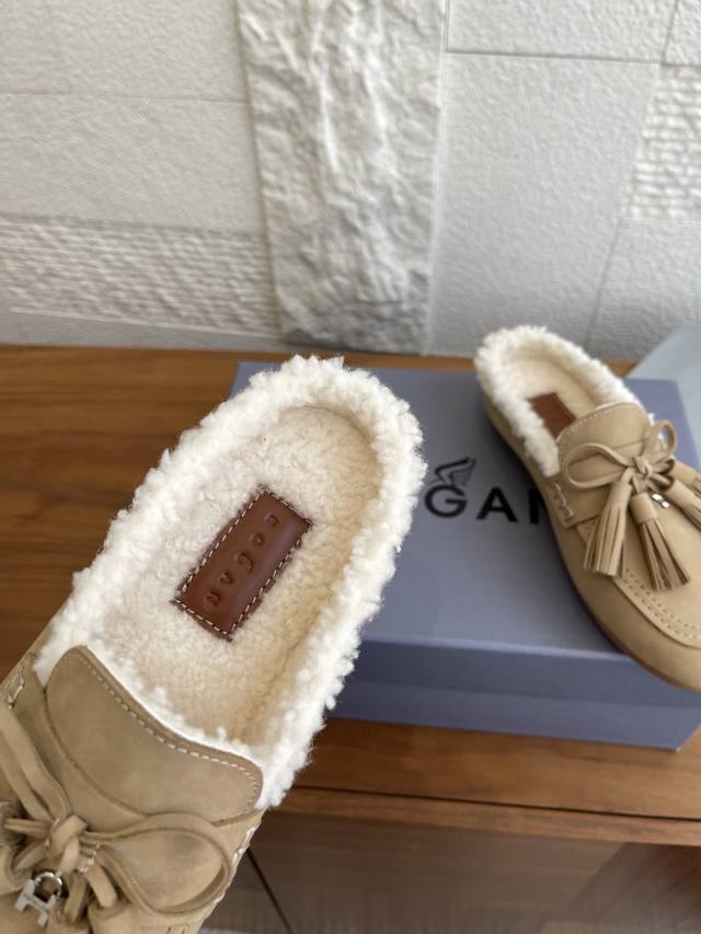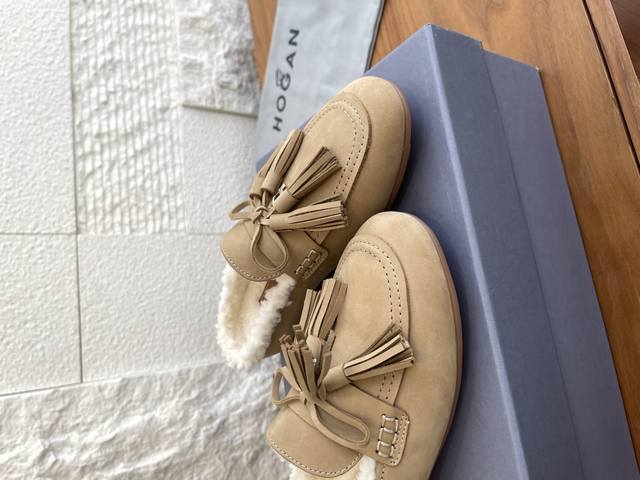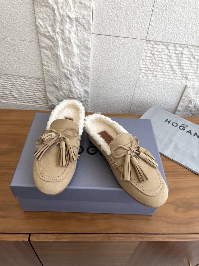 顶级版本: Hogan 霍根 2025 早秋新款 Olympia系列 平底 穆勒鞋 毛拖 半拖 Hogan Olympia系列平底鞋玩转元素碰撞设计,斯文秀气的鞋面结合灵感源自足球运动的鞋底。本款穆勒鞋鞋面为绒面皮革材质,蝴蝶结点缀光滑皮革吊穗和H字母吊饰。剪羊毛衬里温暖柔软,是冬季优雅之选。 面料:进口高光丝牛绒 内里:进口羊毛 大底:原版开模橡胶大底 Size:35-42 40 41 42定做不退换