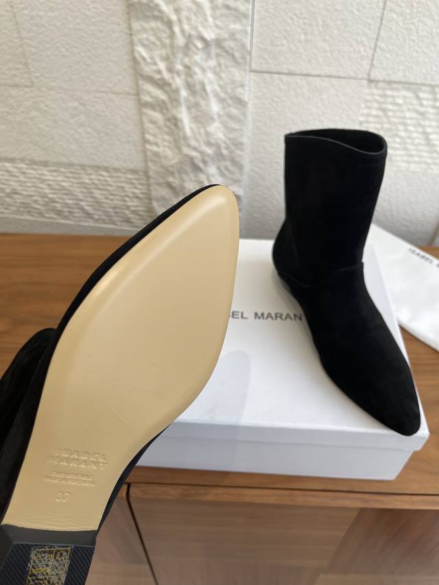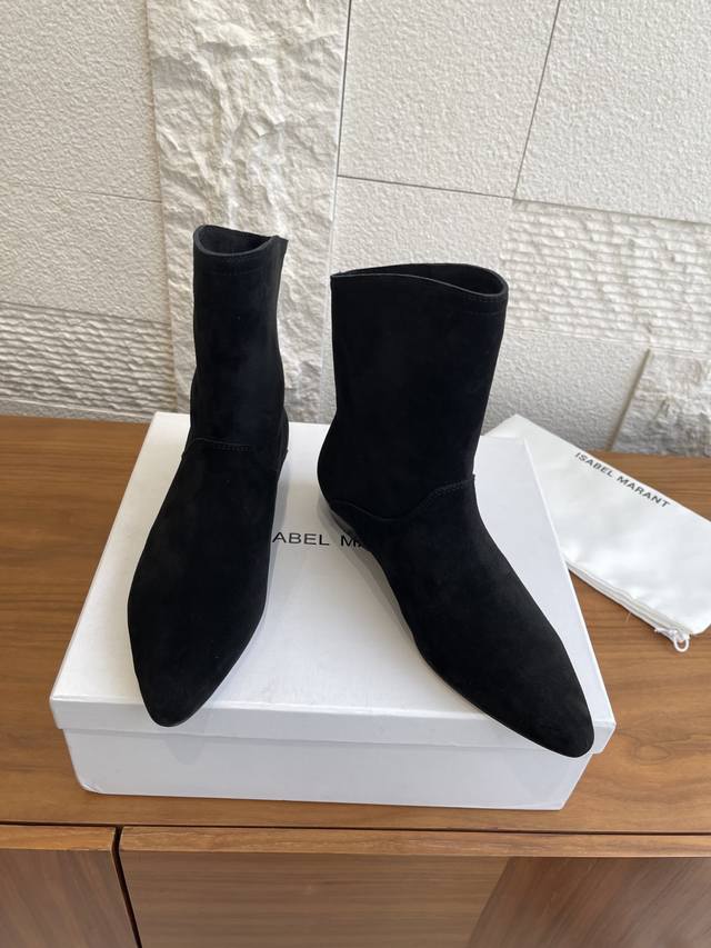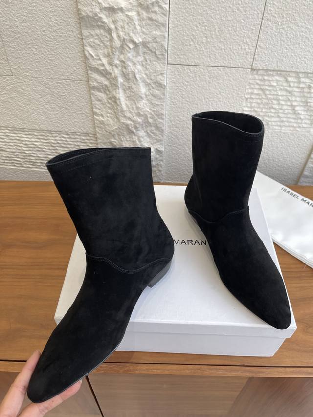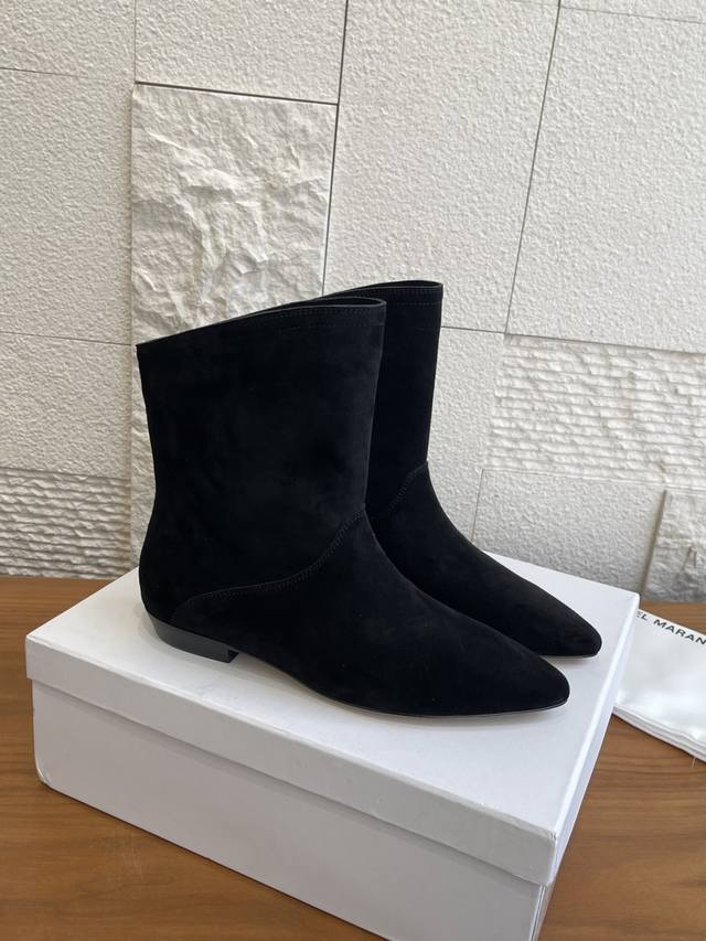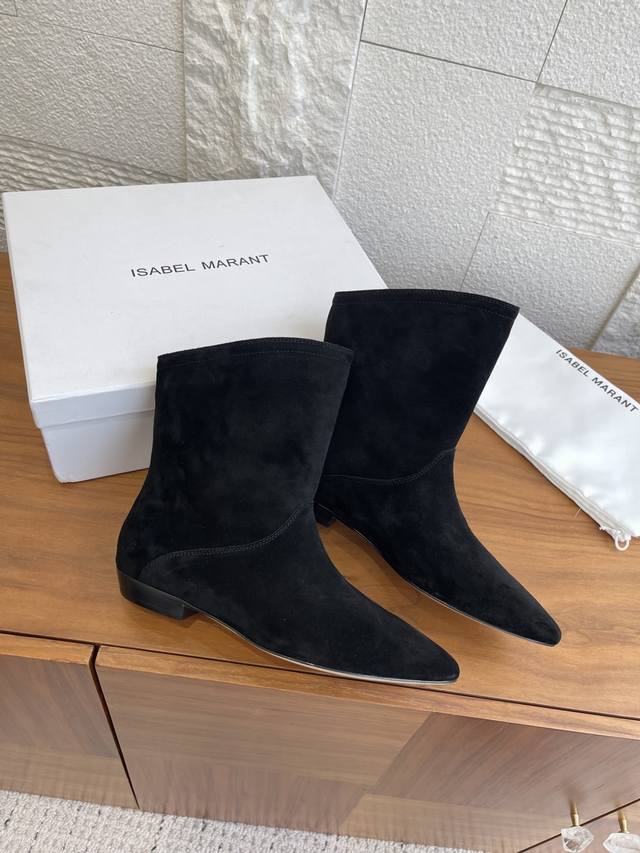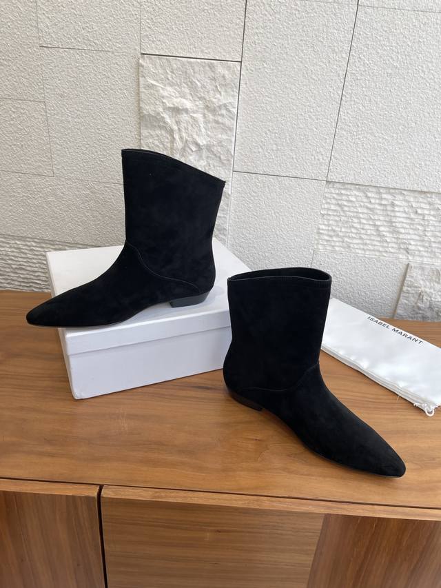 顶级版本: Isabel Marant 25Ss 秋冬新款 尖头 平底 斜口踝靴 短靴 Isabel Marant超级有调性的一款一脚蹬短靴,斜式筒口设计更方便穿脱,穿上显瘦修长脚型,少女感满满,百搭款衣橱必备之物。 面料:原版定制进口牛反绒 内里:进口羊皮 大底:意大利进口真皮大底 Size:35-41 40 41定做不退换