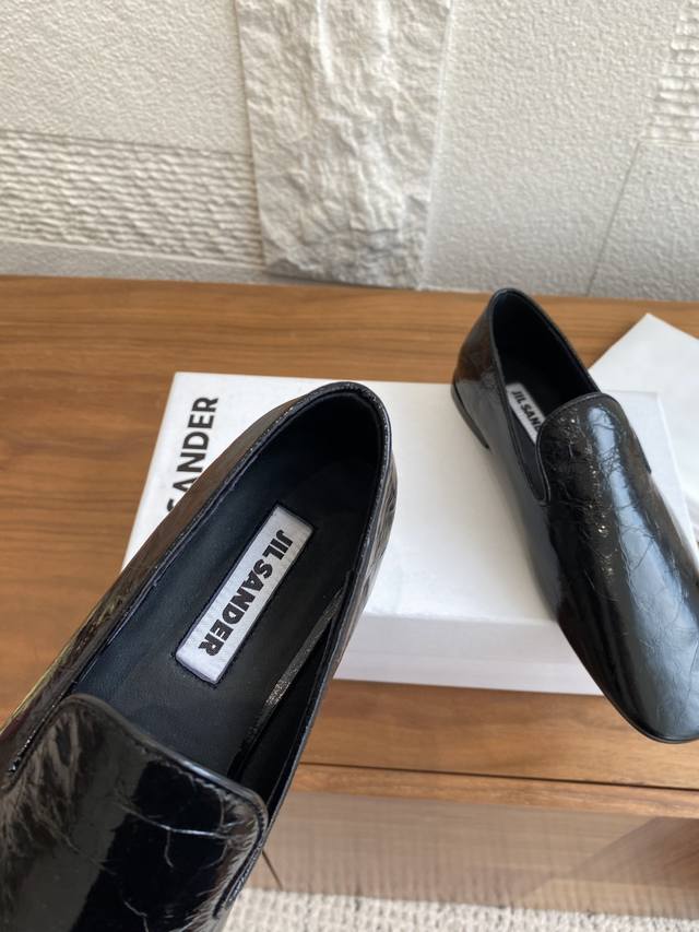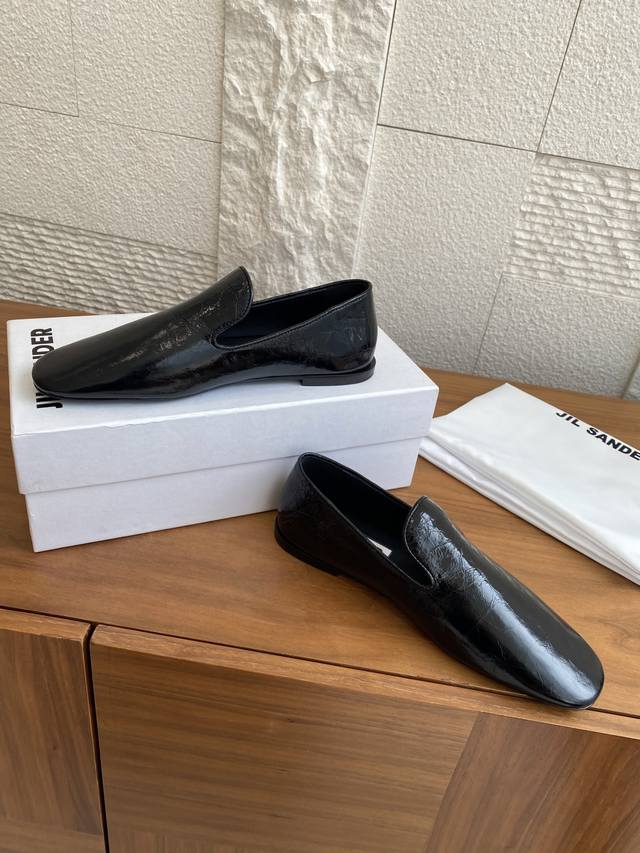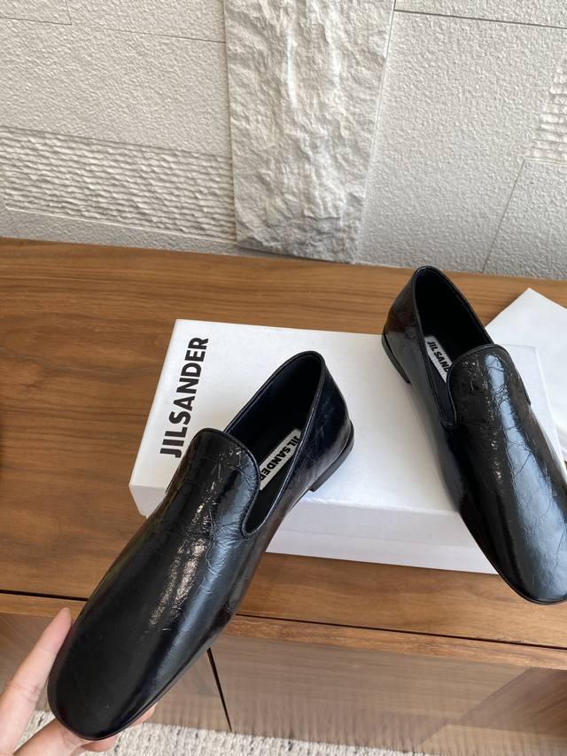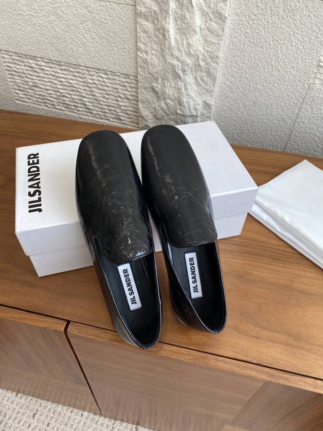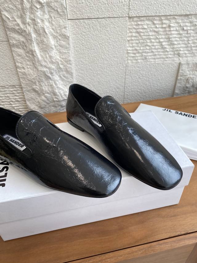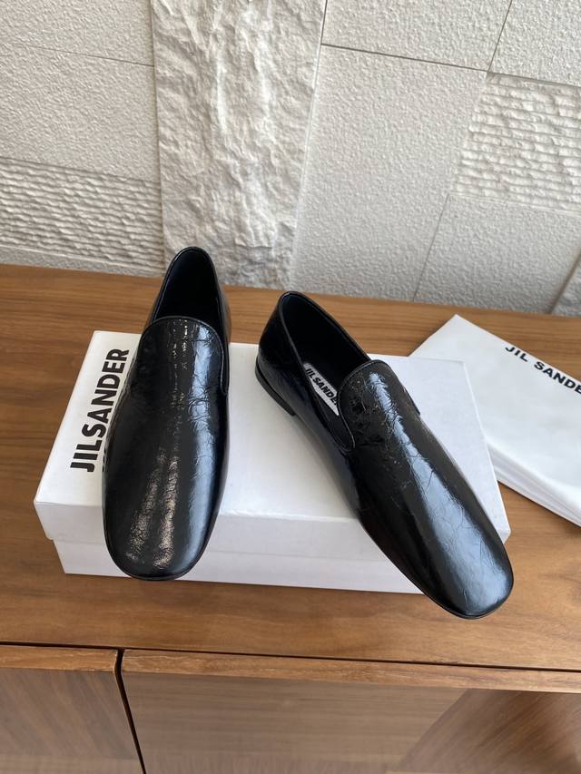 顶级版本: Jil Sander 吉尔桑德 25Ss 圆头 褶纹 平底 莫卡辛鞋 乐福鞋 Jil Sander褶纹漆皮平底莫卡辛鞋乐福鞋是简约美学与精湛工艺的完