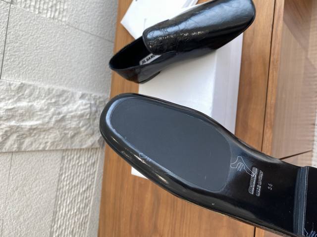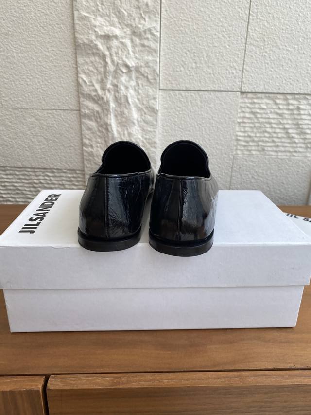 顶级版本: Jil Sander 吉尔桑德 25Ss 圆头 褶纹 平底 莫卡辛鞋 乐福鞋 Jil Sander褶纹漆皮平底莫卡辛鞋乐福鞋是简约美学与精湛工艺的完美融合。这款乐福鞋采用优质漆皮材质,表面呈现独特的褶纹效果,搭配品牌标志性的莫卡辛缝线工艺,在极致简约中彰显非凡细节。鞋子采用圆头设计和平底款式,既确保了全天候的穿着舒适度,又展现出低调优雅的风格 面料:原版定制褶纹漆皮 内里:进口山羊皮 大底:意大利进口真皮大底+注塑橡胶 Size:35-41 40 41定做不退换