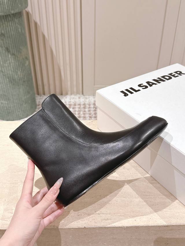 顶级版本: DDD Jil Sander 吉尔桑达秋冬超火极简内**及踝靴侧拉链圆头短靴切尔西奶奶靴 DDD 简约大气款!上身无敌修饰腿型!真的帅Bao了!!内**设计上脚巨显腿直,又瘦又直!!对于腿不直腿粗的也非常友好~搭配上更是不用多说啦~百搭神器 DDD 面料:牛皮 DDD 内里垫脚:羊皮 DDD 鞋底:意大利注塑真皮大底 DDD 内**:3.5Cm DDD 码数:35-39 40.41定做不退换 DDD