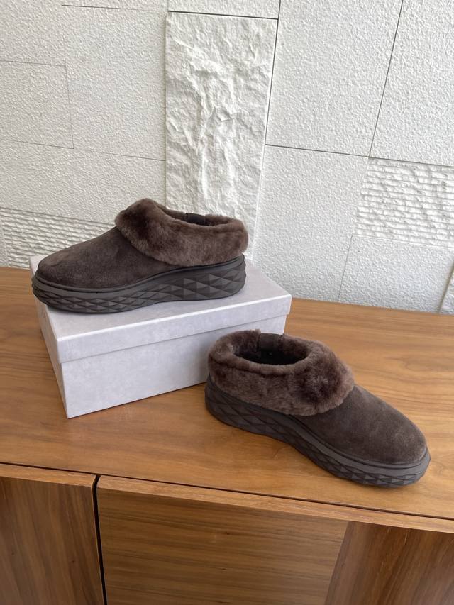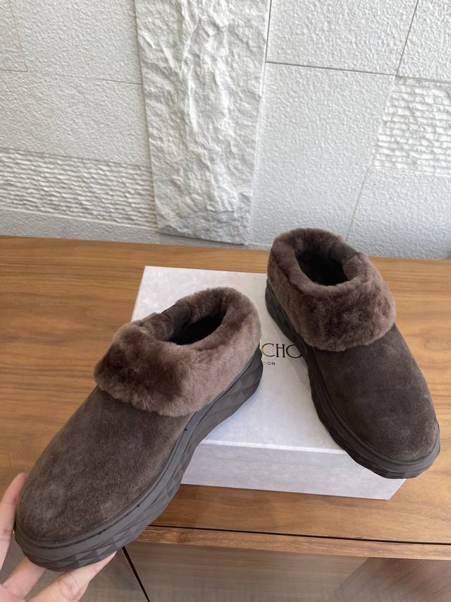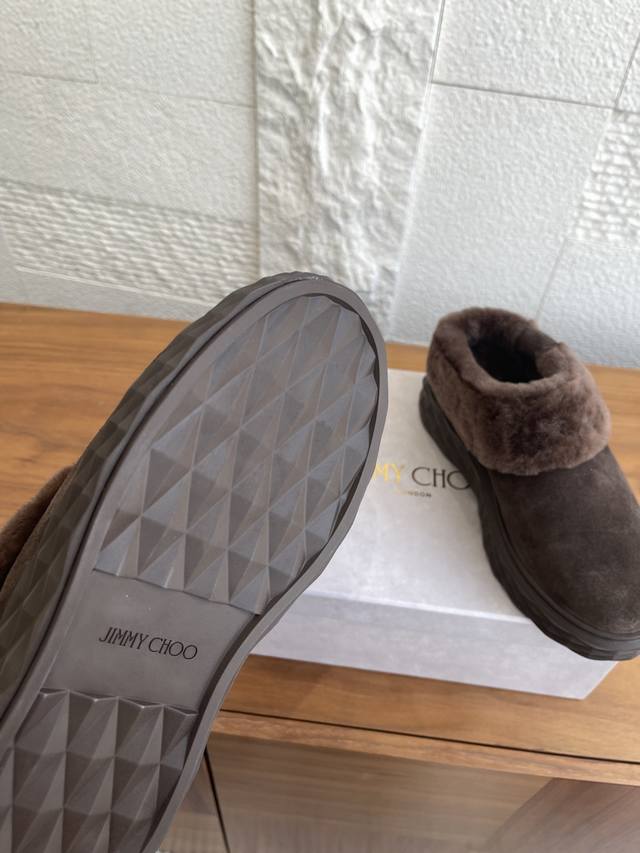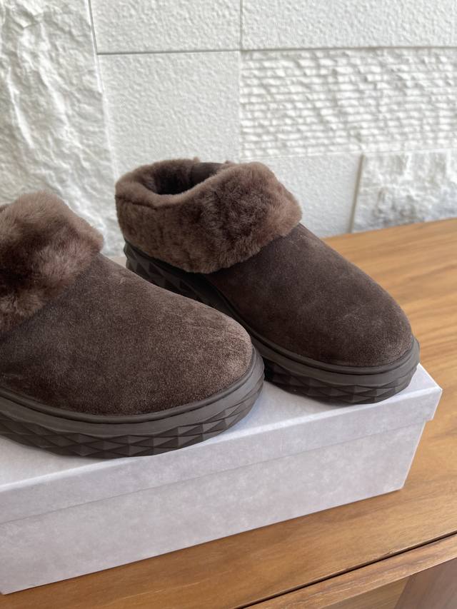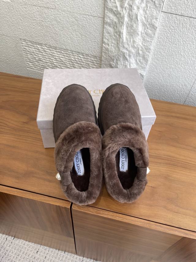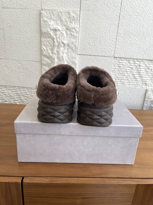 顶级版本: Jimmy Choo 吉米周 2025 秋冬新款 一脚蹬 穆勒鞋 毛毛鞋 Jc吉米周The Diamond Maxi Mule 穆勒鞋,一脚蹬便鞋造型设计,鞋身选用太妃糖色绒面皮料打造,内衬采用同色系剪羊毛制作,舒适温暖,别致时尚。侧面饰有皮革装饰带并搭配刻有 Jc 字母的珍珠圆扣;标志性 Diamond 鞋底提供出色的防滑力。 面料:进口麂皮绒 内里:进口羊毛 大底:原版开模Tpu大底 Sizr:35-40 40定做不退换