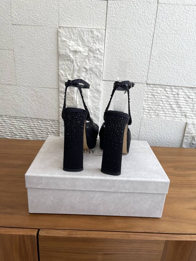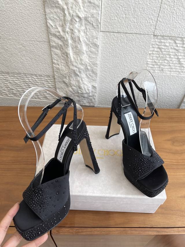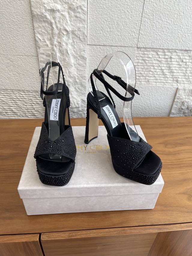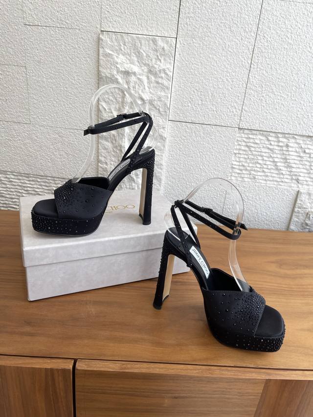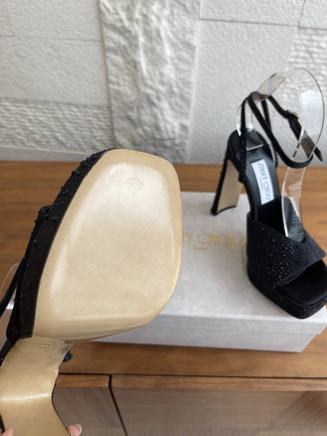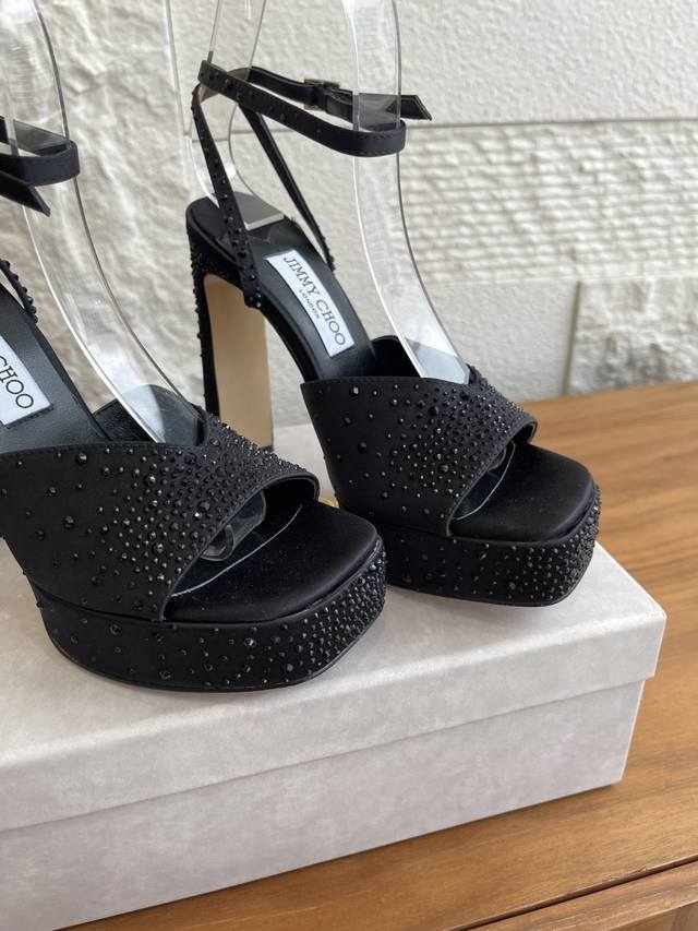 顶级版本: Jimmy Choo 吉米周 2026 初春新款 Karli 方头 露趾 防水台 高跟 凉鞋 这款优雅的 Karli 厚底凉鞋采用烫钻水晶缎面制作,这种款式采用现代方头和可调节的十字踝带。鞋身点缀精美全水晶,一颗水晶优雅垂饰后跟线,闪耀夺目。经巧思设计制作的十字踝带轻饶足踝,轻松突显腿部线条纤长,配以3厘米厚底防水台和12.5厘米细高跟,美艳吸睛,魅力四射。 面料:进口真丝绸缎烫钻 内里:进口羊皮 大底:意大利进口真皮大底 Size:35-42 40 41 42定做不退换