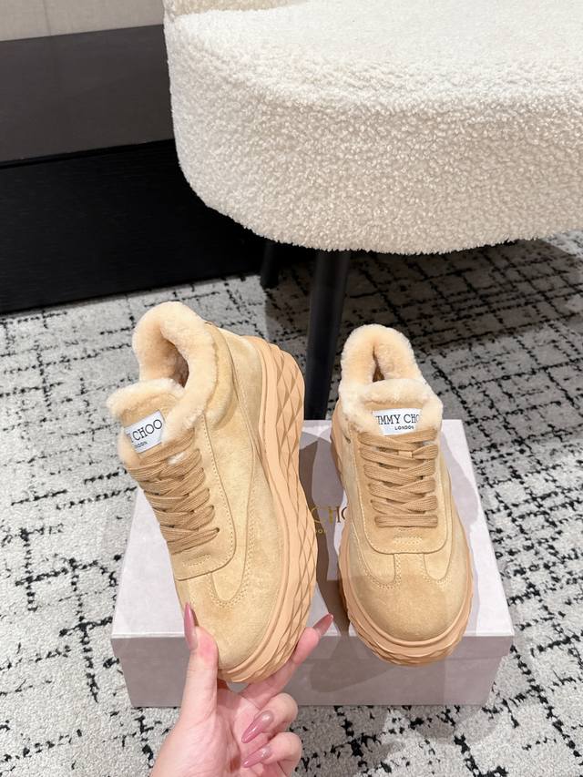 / 顶级版本 Jimmy Choo 吉米周 25 最新 Diamond Maxi Mule F 羊毛 厚底 休闲鞋 秋冬百搭神器! 打破传统审美,透明底做到了 明星