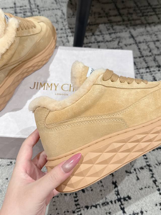顶级版本 Jimmy Choo 吉米周 25 最新 Diamond Maxi Mule F 羊毛 厚底 休闲鞋 秋冬百搭神器! 打破传统审美,透明底做到了 明星
