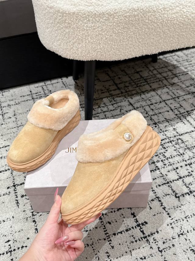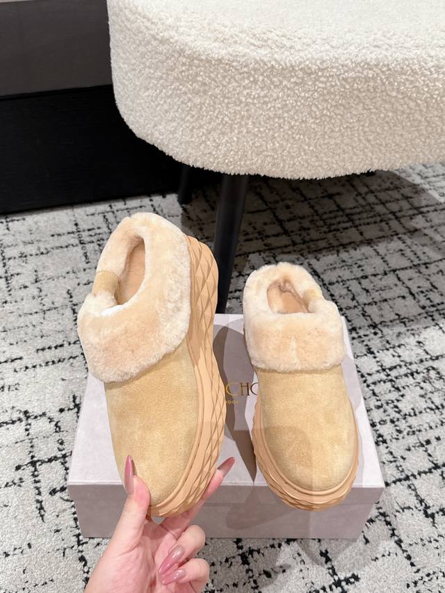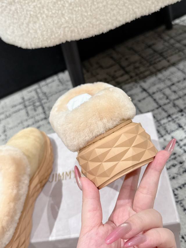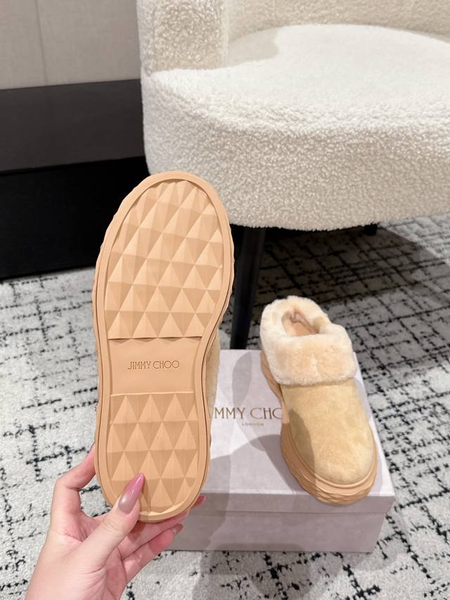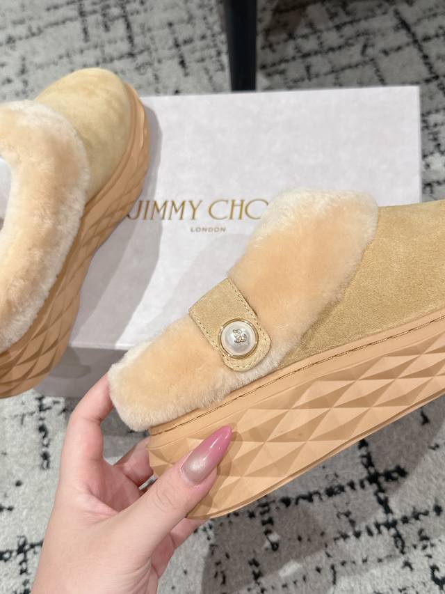 顶级版本 Jimmy Choo 吉米周 25 最新 Diamond Maxi Mule F 羊毛 厚底 包头拖鞋 秋冬百搭神器! 打破传统审美,透明底做到了 明