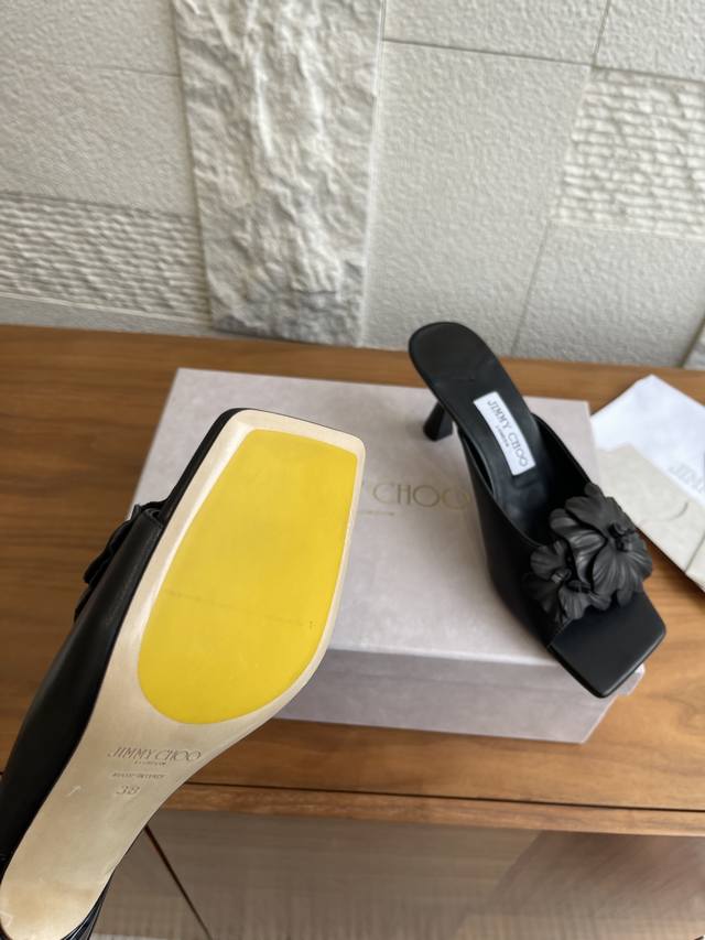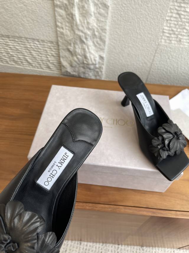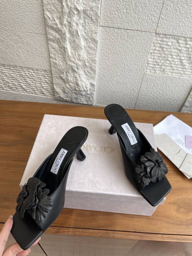 顶级版本: Jimmy Choo 吉米周 25Ss 春夏新款 Amit Flowers 45系列 方头 真皮花卉 拖鞋 Jc吉米周Amita Flowers 45 系列露跟高跟鞋,以夺目马蹄跟提升经典廓形雅致气场。精选优质小羊皮革材质,鞋身点缀同色花卉,精美别致,相得益彰,时髦而不刻意。装饰花卉采用压纹皮革制作,与磨面皮革鞋面光滑质地形成质感对比。一条优雅弹力绑带交结于鞋面深V开口,配以4.5厘米中跟,是搭配日装的舒适亮眼之选。 面料: 进口小羊皮 内里 垫脚: 进口羊皮 大底: 意大利进口真皮大底+注塑