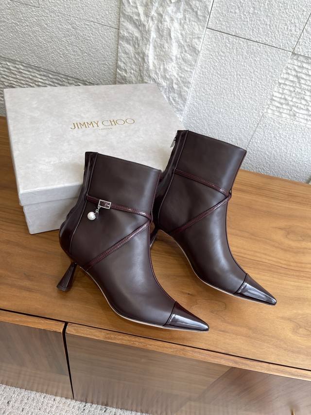 / 顶级版本: Jimmy Choo 2025 秋季新款 Aren Ankle Boot 65 珍珠吊饰 高跟 踝靴 Aren Ankle Boot 65 系列踝靴