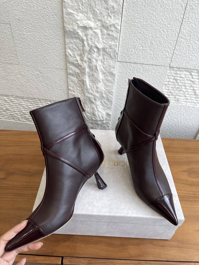 顶级版本: Jimmy Choo 2025 秋季新款 Aren Ankle Boot 65 珍珠吊饰 高跟 踝靴 Aren Ankle Boot 65 系列踝靴,小牛皮拼抛光牛皮材质,尽显现代时髦品味。尖头造型,雕塑感鞋跟,再配以精美珍珠吊饰吸睛点缀,为整体造型增添时尚精致感。 面料:进口小牛皮 开边珠 内里:进口羊皮 大底:意大利进口真皮大底 跟高:6.5Cm Size:35-42 40 41 42定做不退换