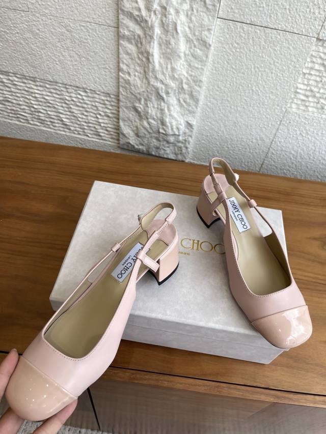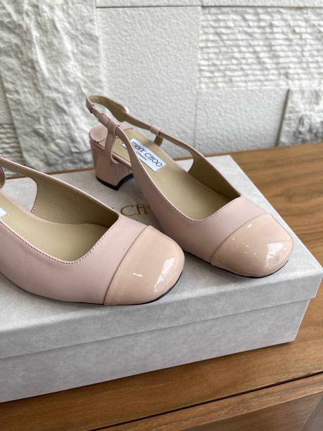 顶级版本: Jimmy Choo 25Ss 秋季新品 圆头 露跟鞋 Elisa Sling Back 45 高跟鞋 Jc吉米周这款Elisa Sling Bac