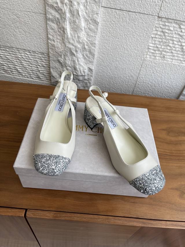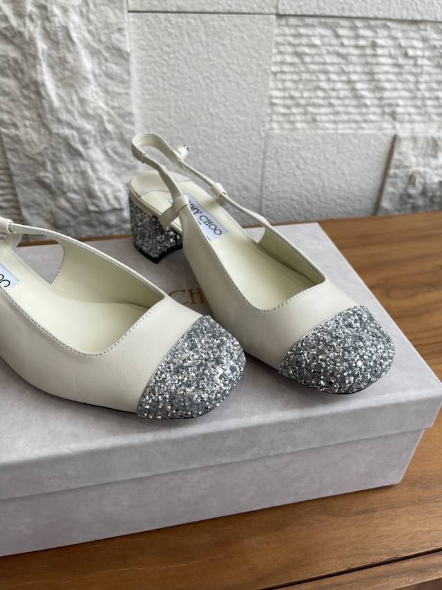 顶级版本: Jimmy Choo 25Ss 秋季新品 圆头 露跟鞋 Elisa Sling Back 45 高跟鞋 Jc吉米周这款Elisa Sling Back 45 系列高跟鞋,小羊皮拼接闪烁格利特,将经典鞋型时尚升级。精美珍珠饰绑带,超舒适低阔跟设计,优雅廓形加上别致细节尽显时尚品味。 面料:进口小羊皮 格力特 内里:进口羊皮 大底:意大利进口真皮大底 跟高:4.5Cm Size:35-41 40 41定做不退换