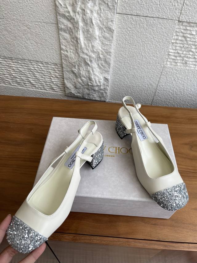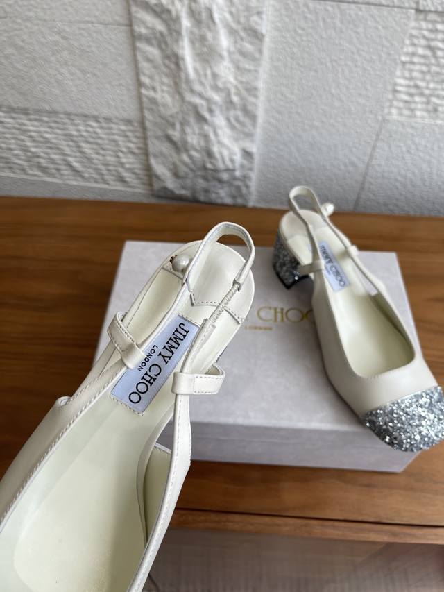 顶级版本: Jimmy Choo 25Ss 秋季新品 圆头 露跟鞋 Elisa Sling Back 45 高跟鞋 Jc吉米周这款Elisa Sling Bac