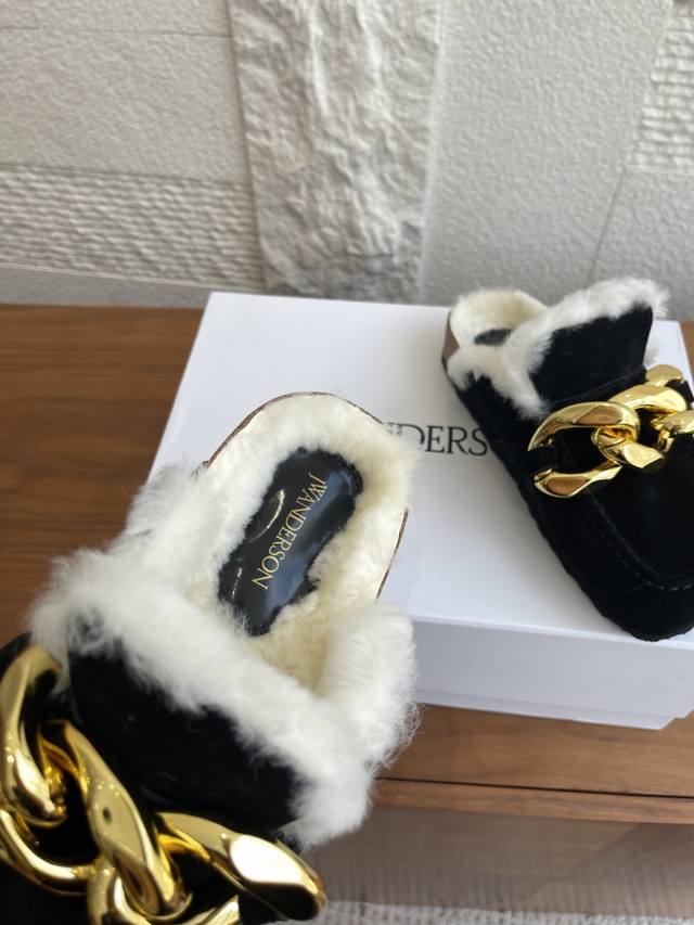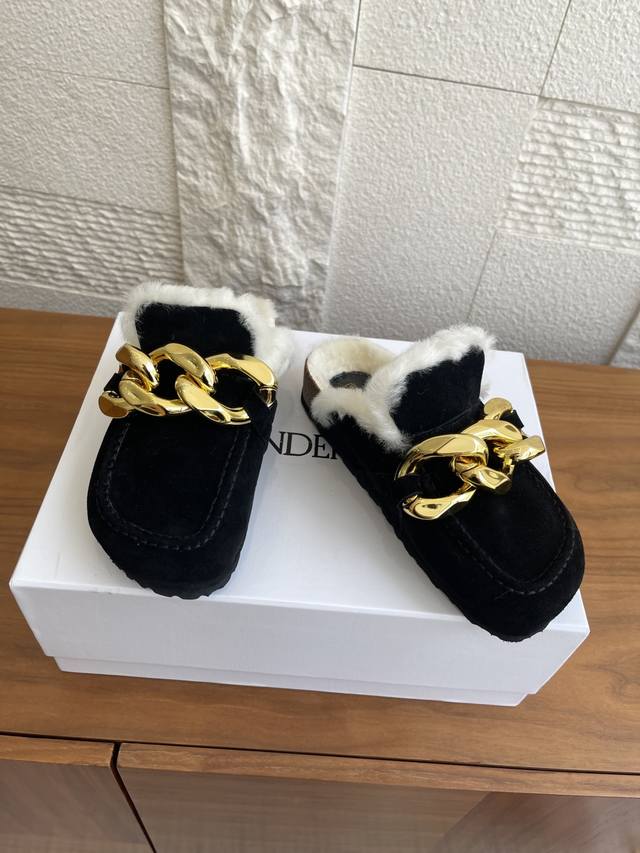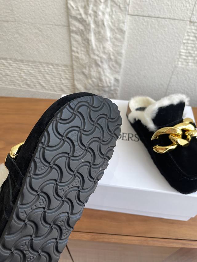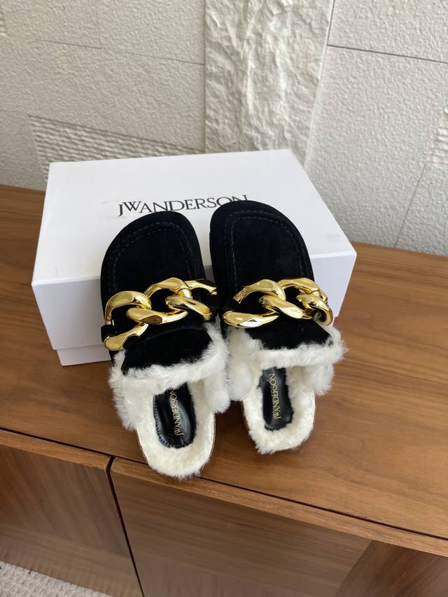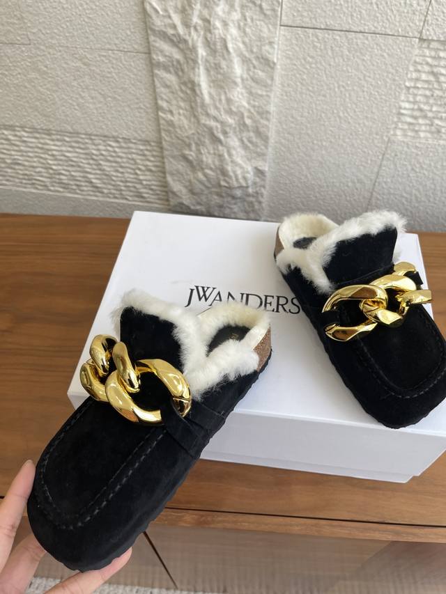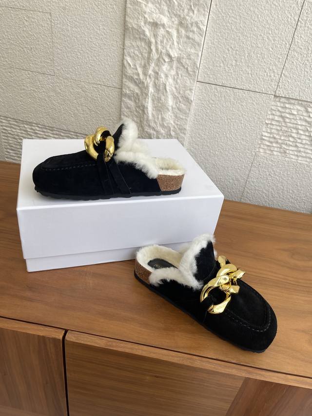 顶级版本: J.W.Anderson 25Ss 秋冬新款 圆头 大金链条 软木底 懒人拖 一脚蹬 半拖 用抱慵懒与奢华并存的当代美学。这款Jw. Inderson穆勒半拖以其标志性的设计语言,鞋面最夺目的亮点莫过于其粗犷而闪耀的仿古金色链条。它不仅是装饰,更是颠覆传统的时尚宣言,无论走到哪里都是焦点所在。将高级时装的精致感与居家般的舒适更意完美融合,成为您造型中不可或缺的Tatement Piece. 面料:进口麂皮 内里 垫脚:羊毛里 大底:原版开模软木底台+Eva底片 Size:35-40 40定做不