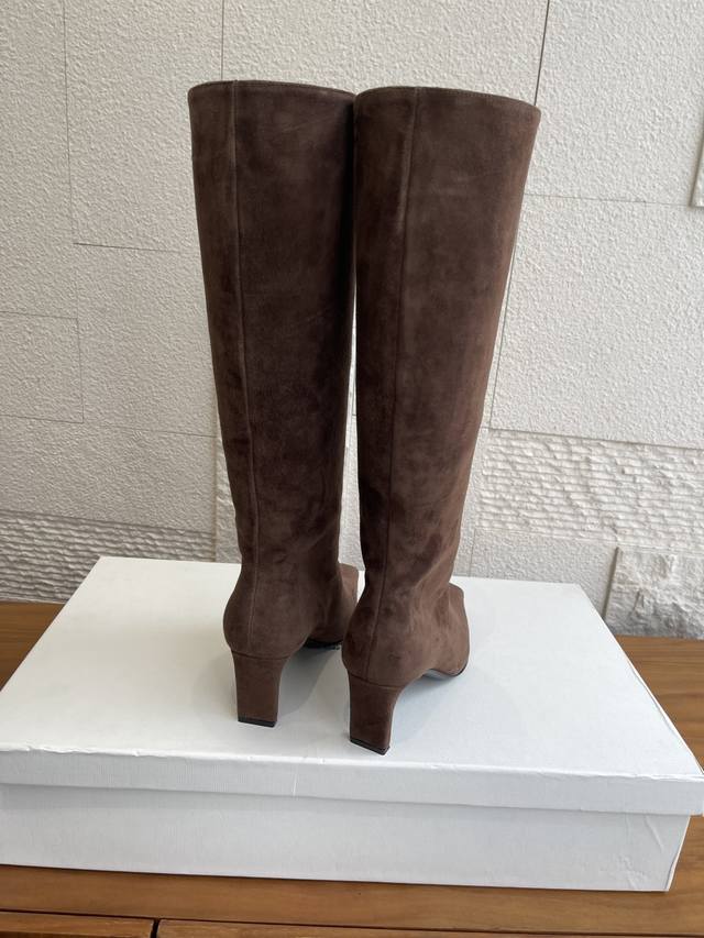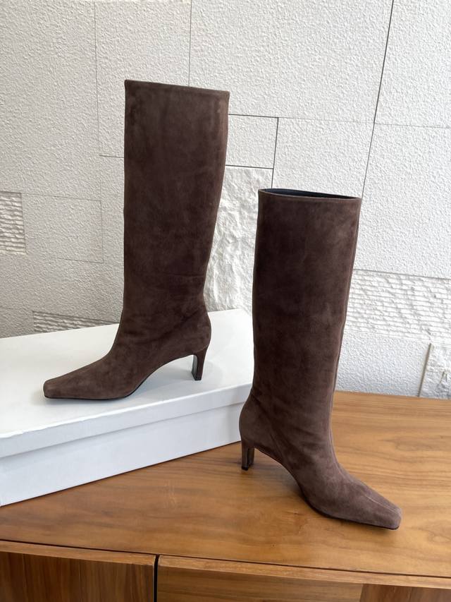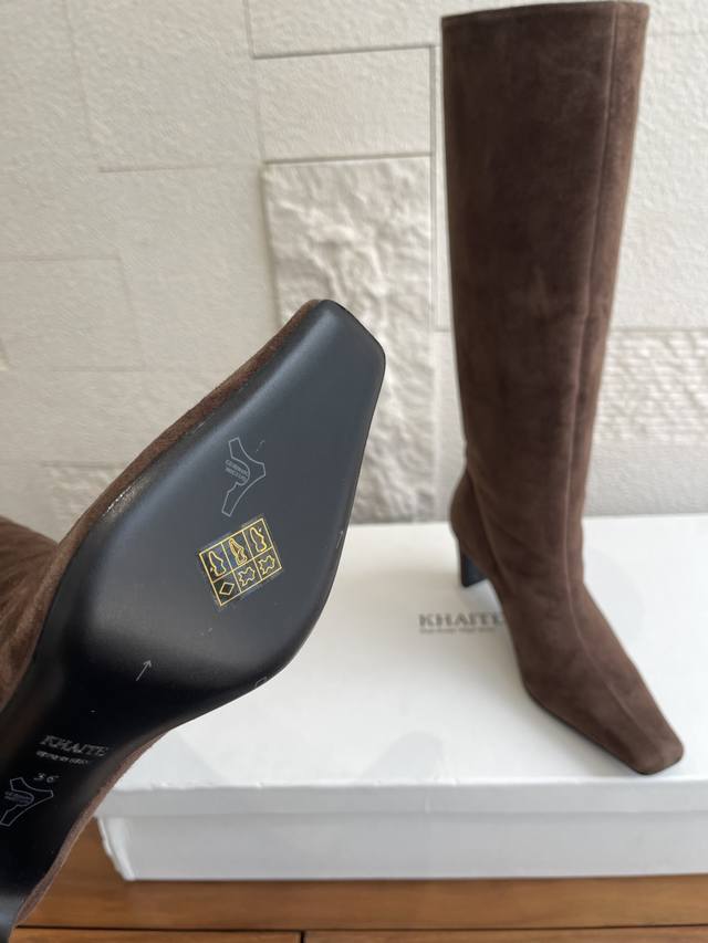 / 顶级版本: Khaite 2025 秋冬新款 方头 高跟 Ona高筒靴 Khaite这款Ona 高筒靴,独特的缺口后背设计,增强了这款绒面皮革的方头踝靴的穿脱便