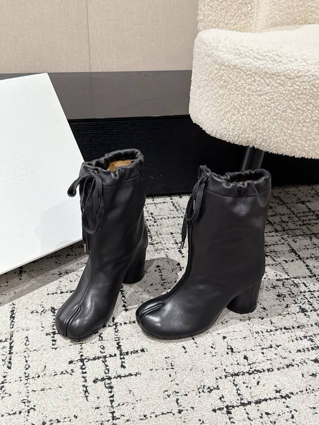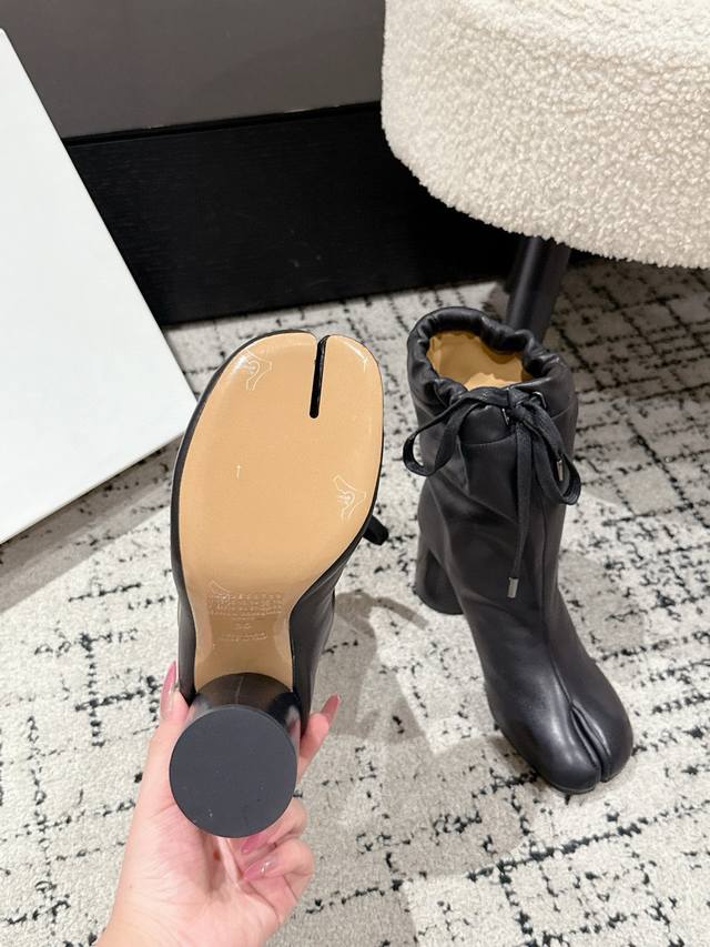 顶级版本 Maison Margiela马吉拉 25 分趾绑带宽松 高跟 短靴 气球靴 Mm6家Tabi分趾鞋靴 秋冬新品最高版本买手代购1:1完美复刻分趾Tabi靴原版开模双层真皮鞋底 原版套楦鞋型很大方 搭配各种风格都可以轻松驾驭 小短腿的福音 上身瞬间秒变大长腿 上脚不被常规所拘束,随心所欲做自己 上脚炒鸡柔软舒适, 鞋面:原版牛皮 内里:原版真皮 大底:原版真皮鞋底 跟高:7.5Cm Size:#35-40 40 定制不退不换