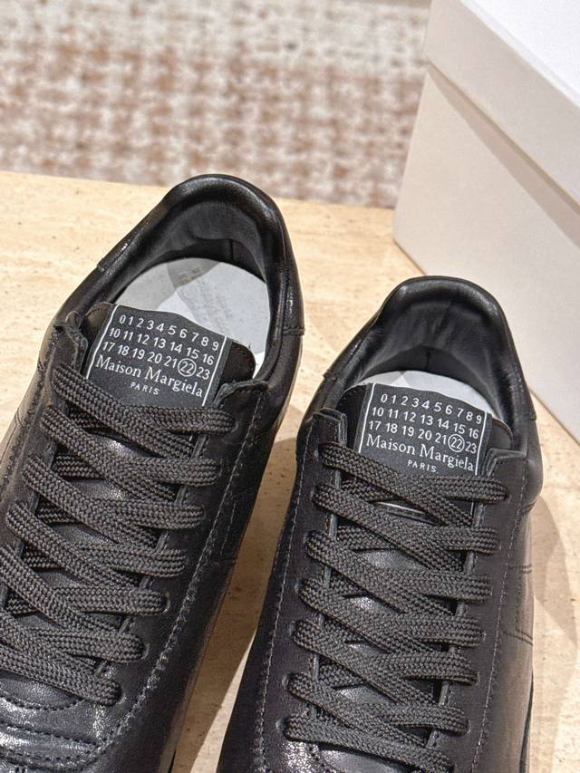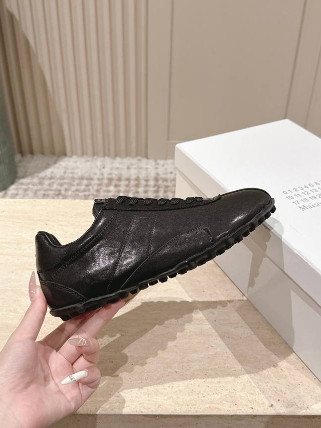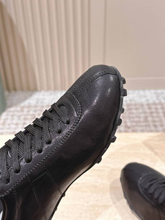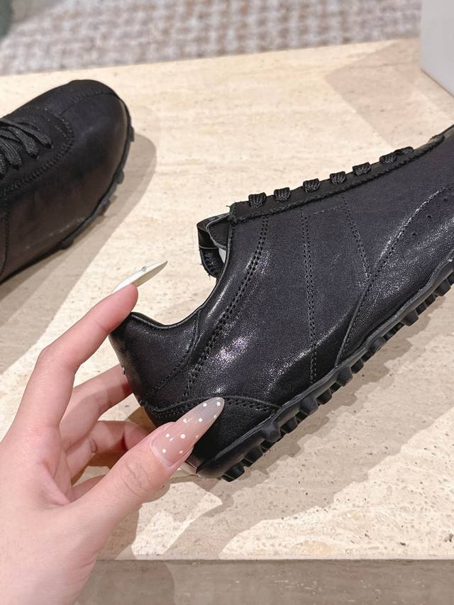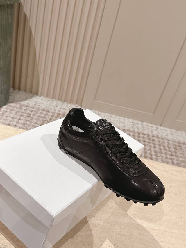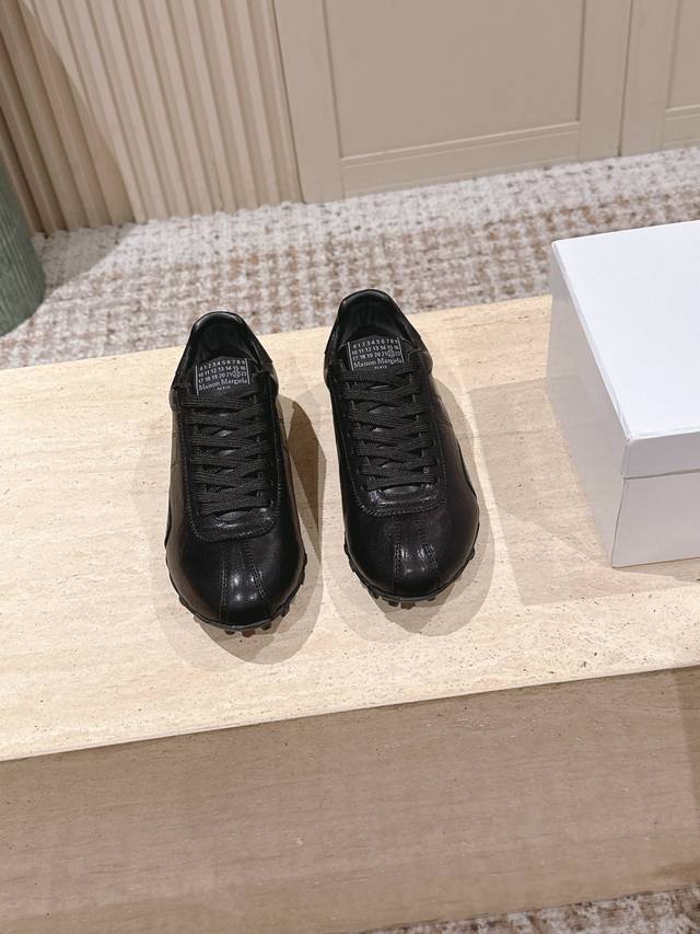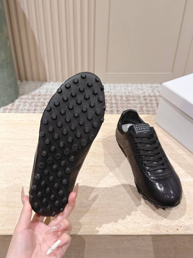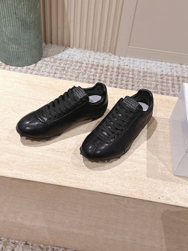 顶级版本: :Maison Margiela 马吉拉2025秋冬系列情侣款阿甘鞋德训鞋 DDD 新款Sprinters运动鞋轮廓采用做旧植柔牛皮制成,灵感来源于复古跑鞋。通过做旧、缝线、拼接等工艺,赋予单品新的生命和美感。舌头饰有经典的数字标志,搭配有防滑的钉状鞋底,鞋尾饰有标志性的白色缝线Logo,充满工艺感。 DDD 面料:牛皮 DDD 原版橡胶大底 DDD 码数:35-39 40-44 女40男45定做 DDD 配原版一致包装 DDD