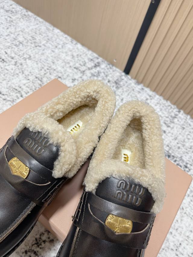 / 顶级版本: Miu Miu 缪缪 秋冬最新款 钱币 乐福鞋 毛毛鞋 超多明星时尚博主种草 毛茸茸的看着就暖和 新出的‘小钱币’真的让人一整个心都融化 除了中间夹