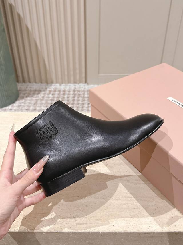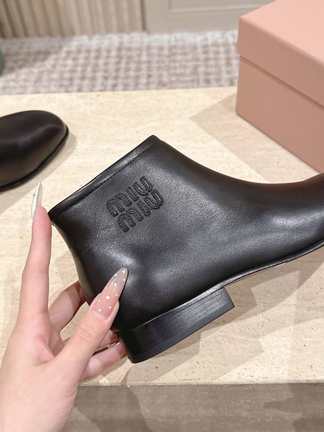 顶级版本: :Miu Miu Fw25 New Arrival~ A级小牛皮材质,质感超赞的 看似简约,但还是有独特的酷劲儿 鞋底意大利进口牛皮革 顶级Size
