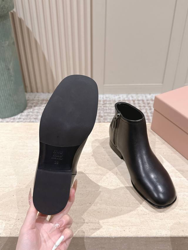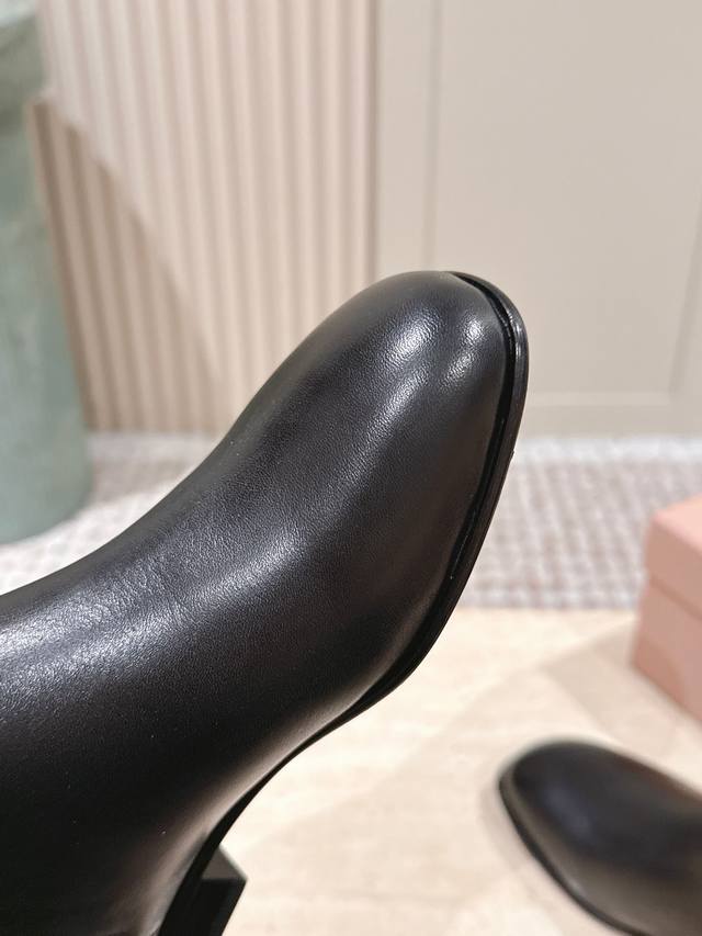 / 顶级版本: :Miu Miu Fw25 New Arrival~ A级小牛皮材质,质感超赞的 看似简约,但还是有独特的酷劲儿 鞋底意大利进口牛皮革 顶级Size