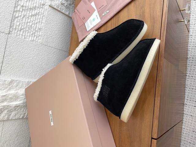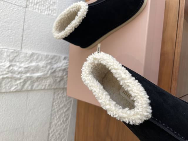 / 顶级版本: Miumiu 缪缪 2025 秋冬新款 羊毛反口雪地靴 Miu Miu缪缪这款羊毛雪地靴,牛反绒鞋面+柔软羊毛内里,保暖又舒适!鞋口毛绒包裹,脚踝更