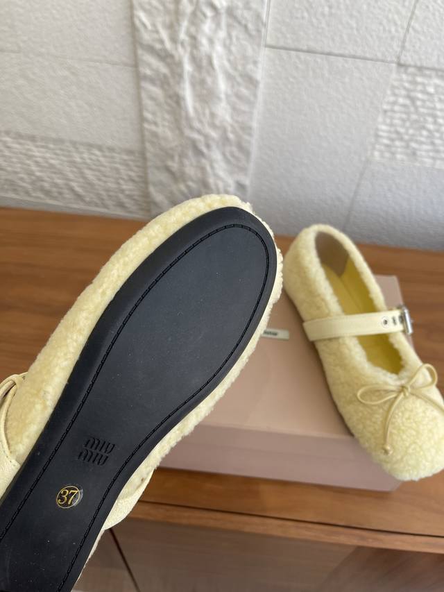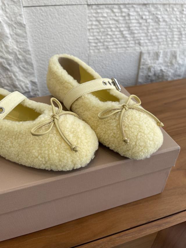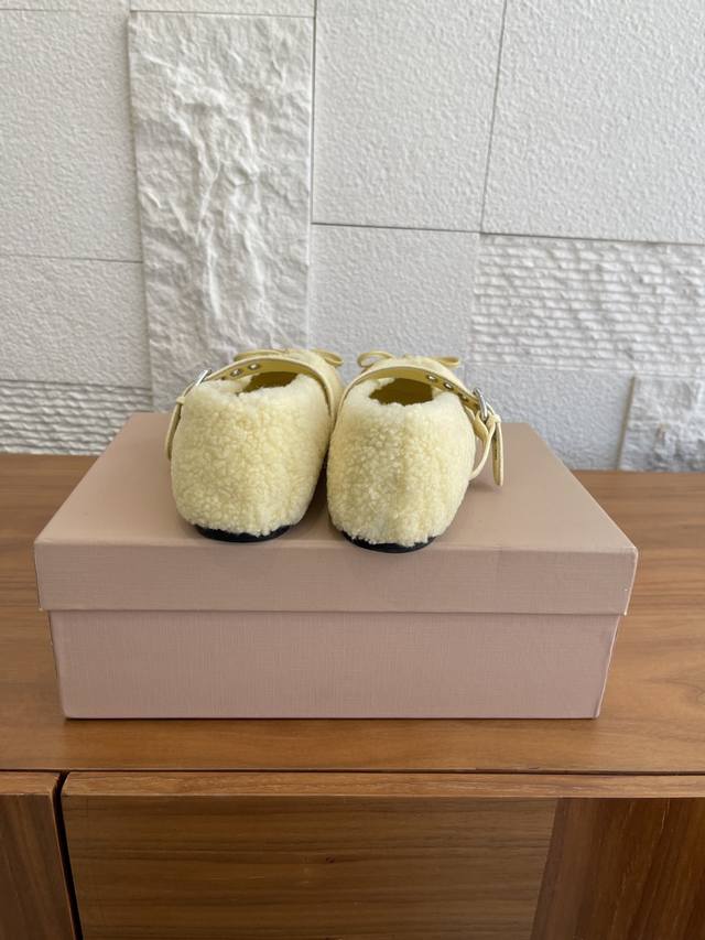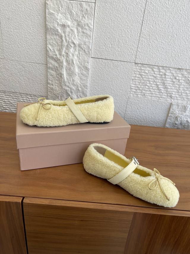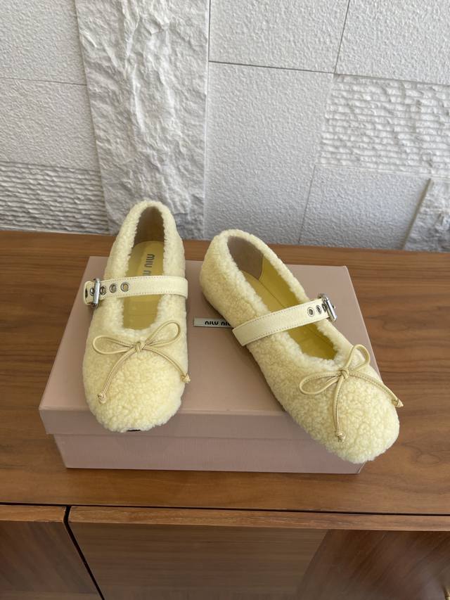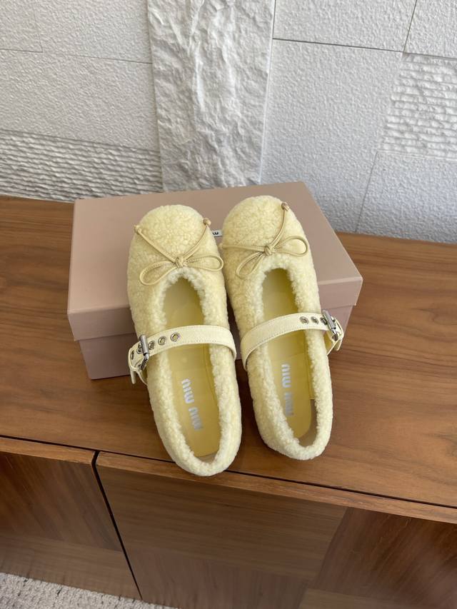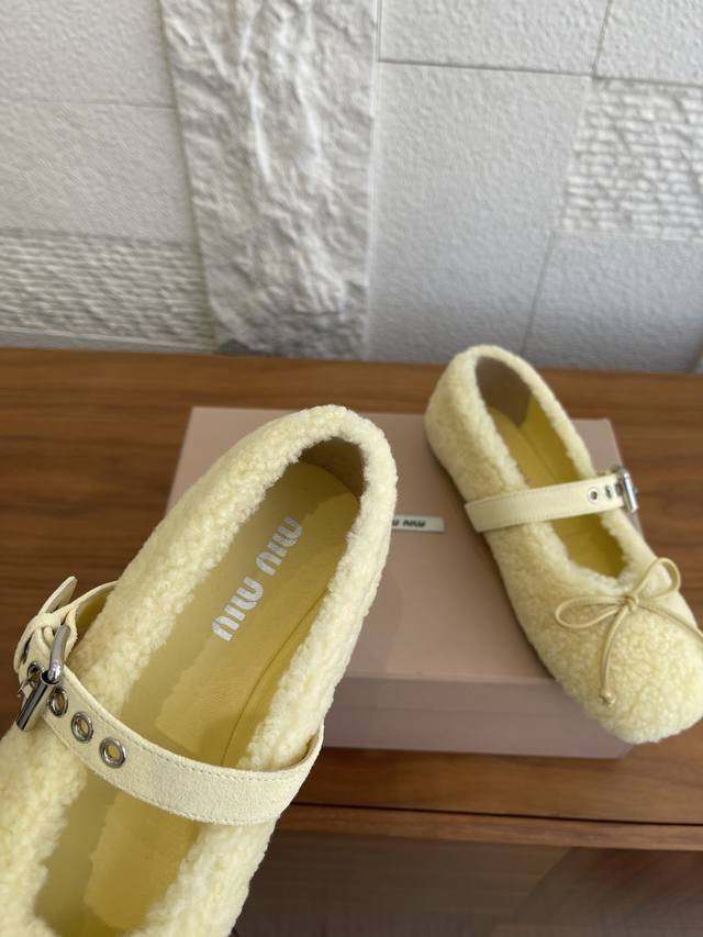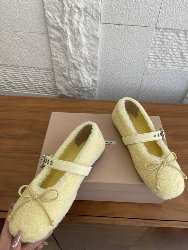 顶级版本: Miumiu 缪缪 2025 秋冬新款 蝴蝶结 卡扣带 毛毛鞋 芭蕾舞鞋 Miumiu这款毛毛芭蕾舞鞋,采用柔软、蓬蓬质感的羊皮毛进一步烘托这款平底