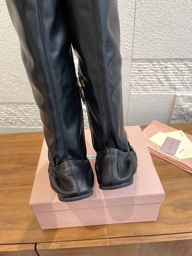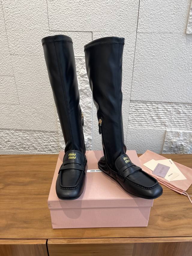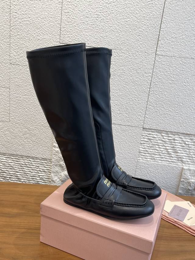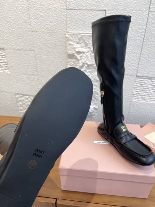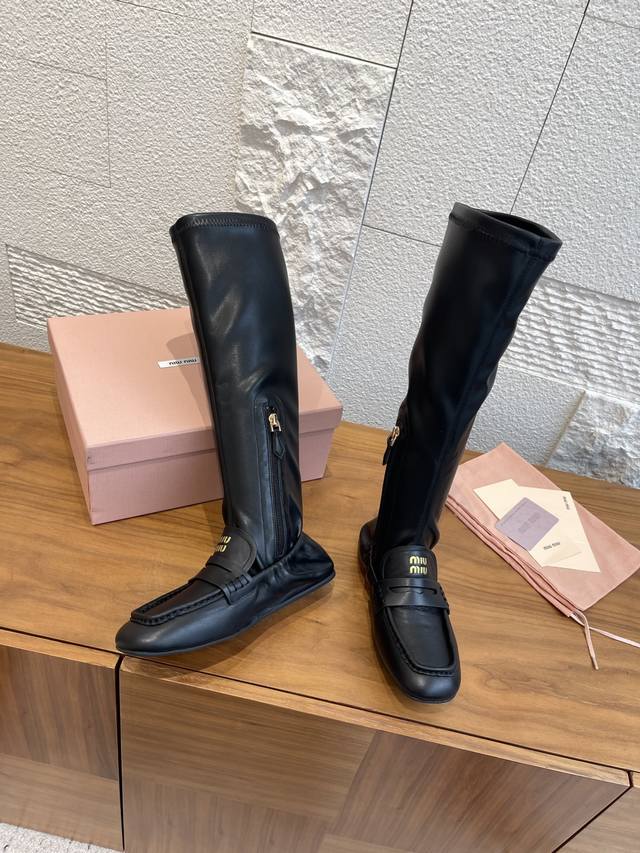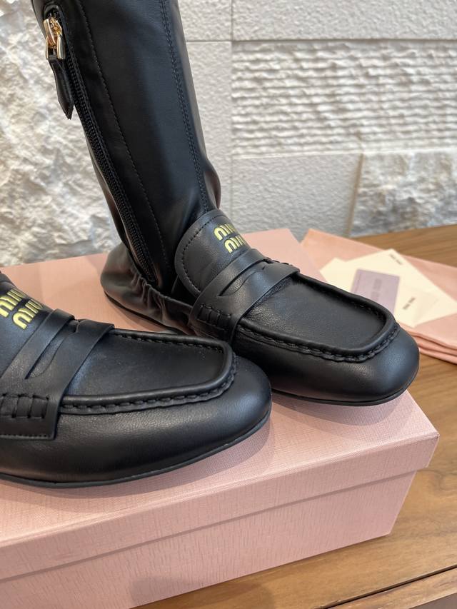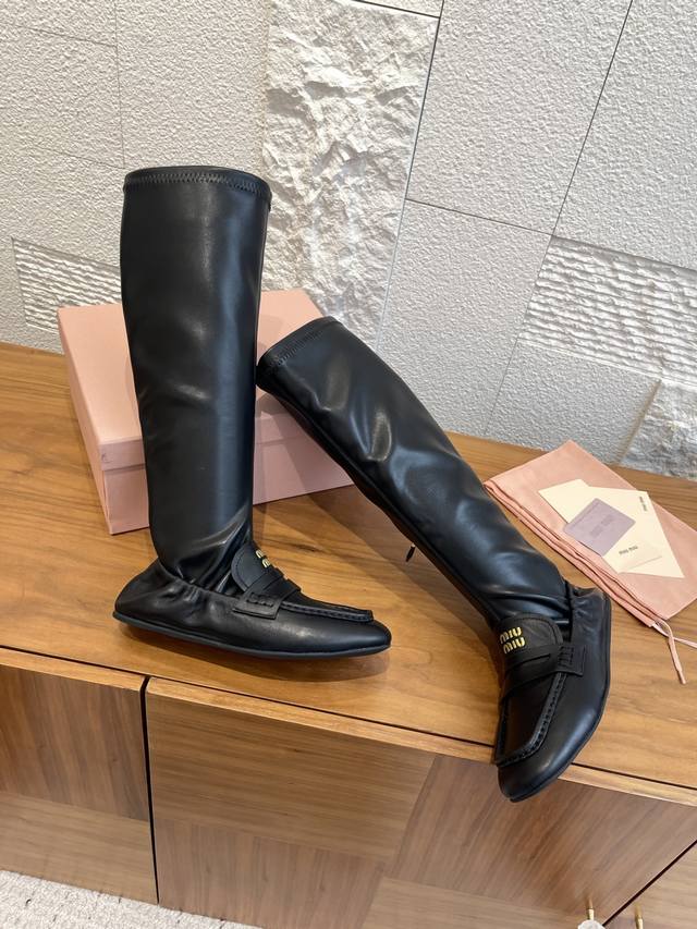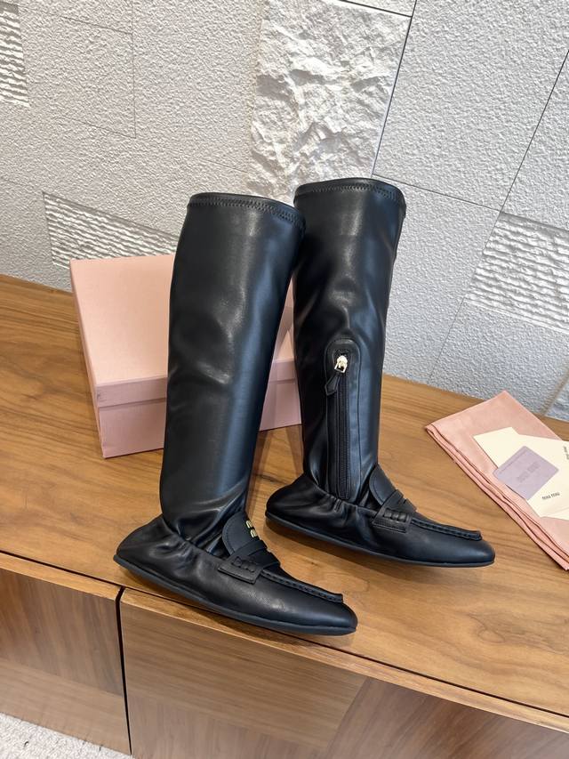 顶级版本: Miumiu 缪缪 2025 秋冬新款 褶边 内侧拉链 弹力靴筒 长靴 Miu Miu缪缪这款靴子廓形重新诠释了褶边乐福鞋的美学,出人意料地融入时装