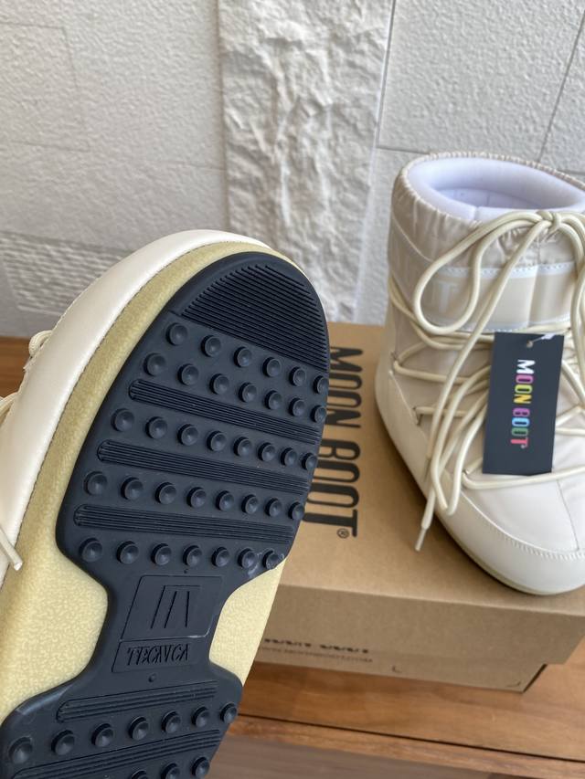 顶级版本: Moon Boot 2025 秋冬爆款 男女同款 Icon尼龙 高帮 低帮 雪地靴 Moon Boot当季甄选Icon尼龙高帮雪地靴,海棉材质将脚部全面包裹,防水泼溅,男女同款,没有左右对错之分,标志拼接印花,鞋体饰有银色金属鞋眼,套穿款式搭配抽绳封口,装饰性交叉圆管鞋带,均塑中底,带Pvc跟部支撑和装饰,橡胶鞋底防滑,鞋底独特吸盘,强劲抓地,提供稳定性能。 面料:原版定制 牛皮 高丝光防水布 内里:原版100%丝绵内胆 垫脚:原版100%丝绵内胆 大底:原版开模热塑性橡胶大底 Size:35