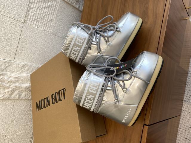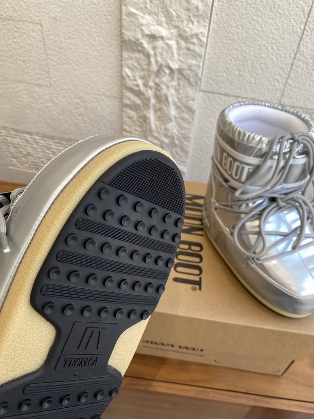 顶级版本: Moon Boot 2025 秋冬爆款 男女同款 Icon金属感 高帮 低帮 雪地靴 Moon Boot当季甄选Icon金属感高帮雪地靴,海棉材质将脚部全面包裹,防水泼溅,男女同款,没有左右对错之分,标志拼接印花,鞋体饰有银色金属鞋眼,套穿款式搭配抽绳封口,装饰性交叉圆管鞋带,均塑中底,带Pvc跟部支撑和装饰,橡胶鞋底防滑,鞋底独特吸盘,强劲抓地,提供稳定性能。 面料:原版定制 牛皮 高丝光防水布 内里:原版100%丝绵内胆 垫脚:原版100%丝绵内胆 大底:原版开模热塑性橡胶大底 Size: